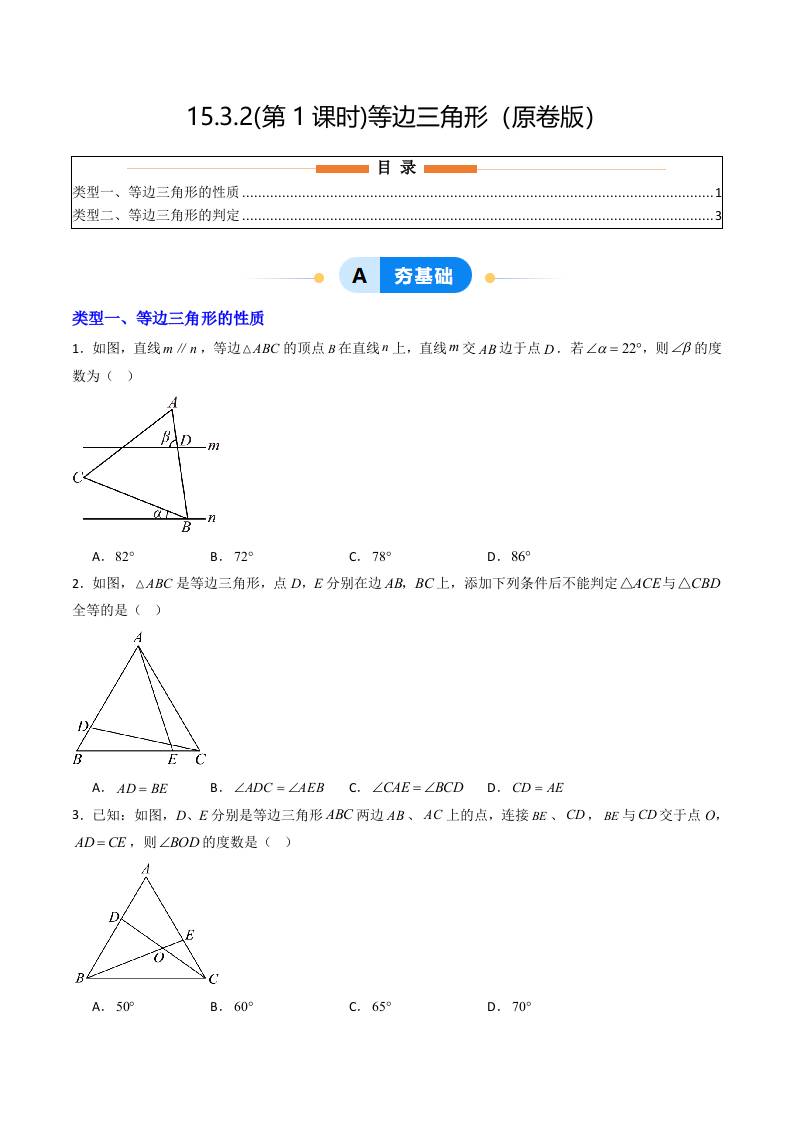 15.3.2(第1课时)等边三角形(分层作业)(学生版)