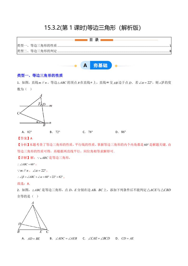 15.3.2(第1课时)等边三角形(分层作业)(教师版)