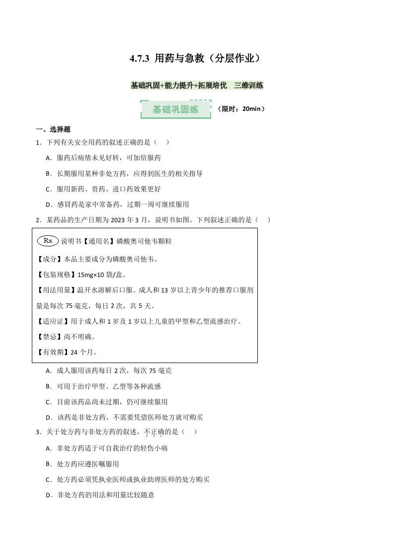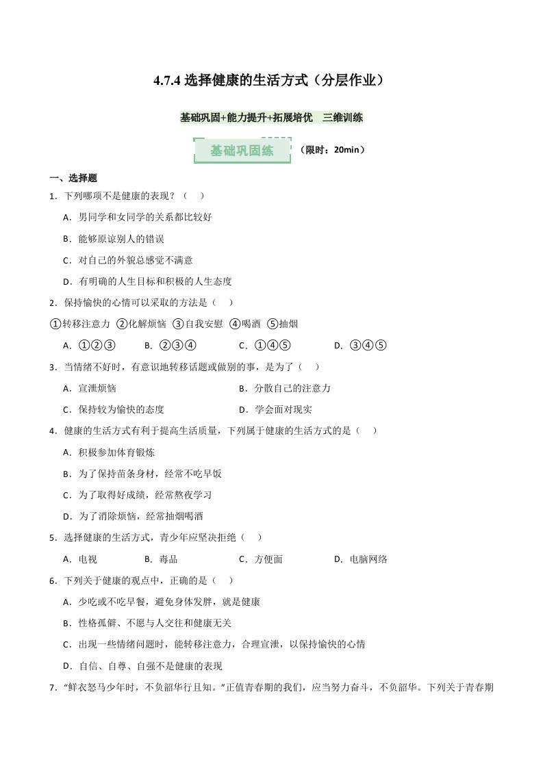 4.7.4选择健康的生活方式(分层作业)(原卷版)