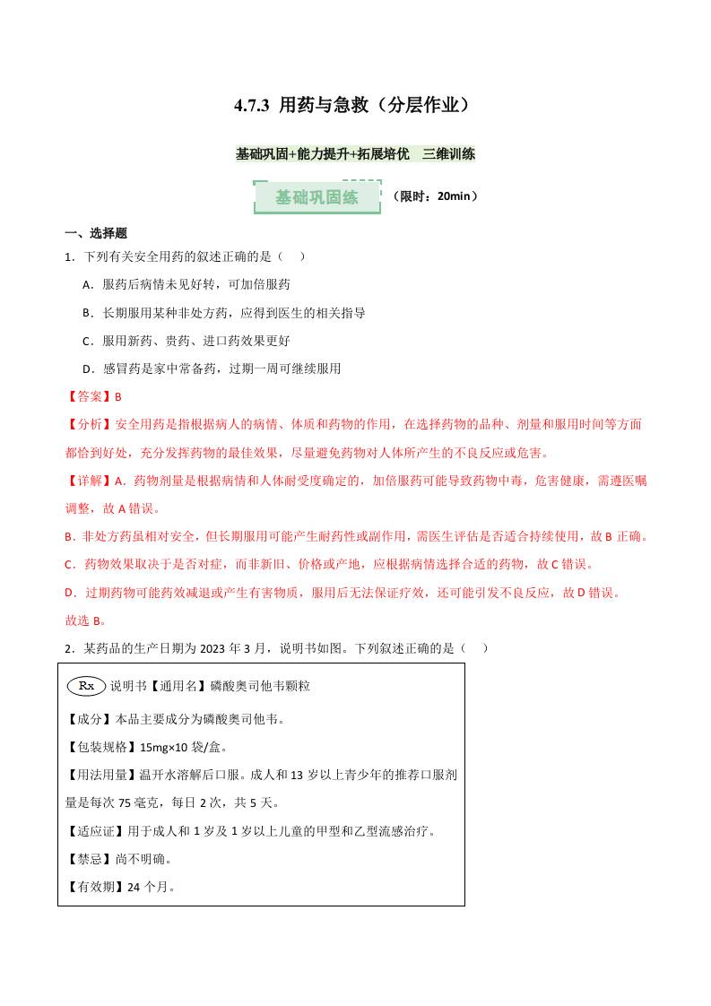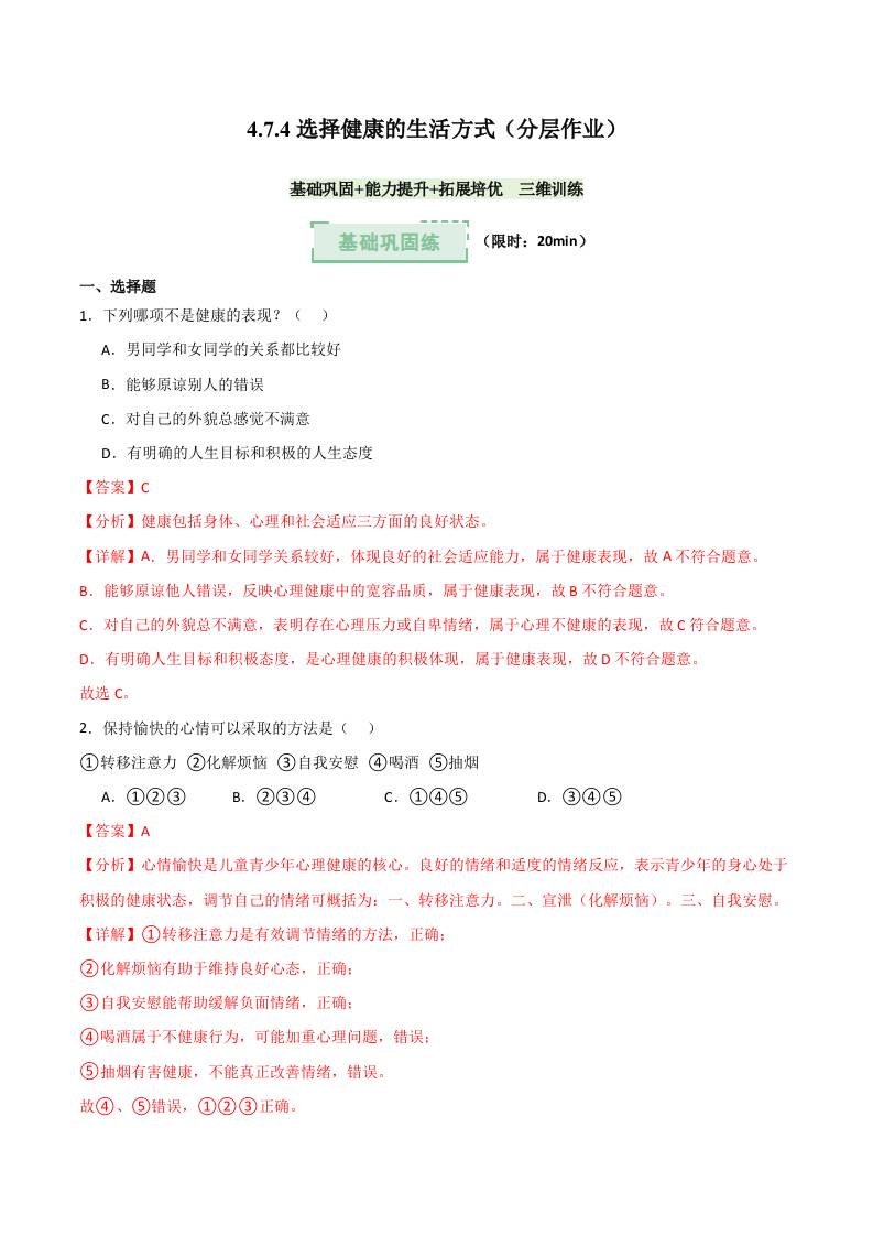 4.7.4选择健康的生活方式(分层作业)(解析版)