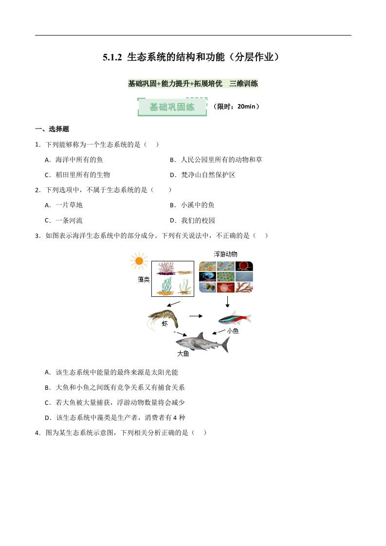 5.1.2 生态系统的结构和功能(分层作业)(原卷版)