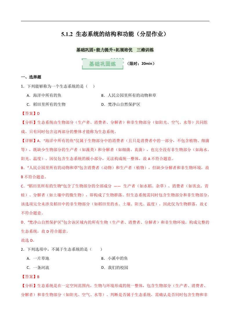 5.1.2 生态系统的结构和功能(分层作业)(解析版)