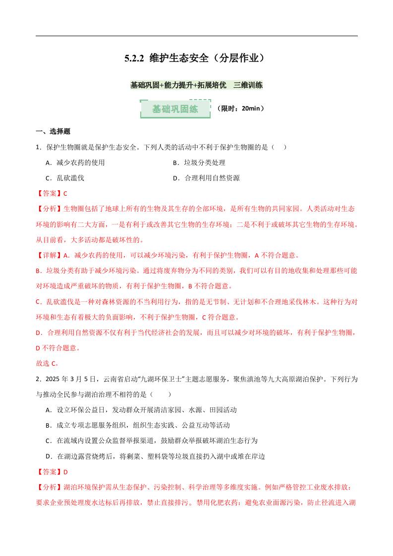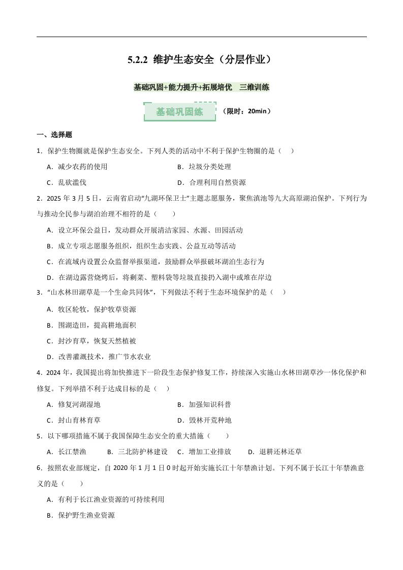 5.2.2 维护生态安全(分层作业)(原卷版)