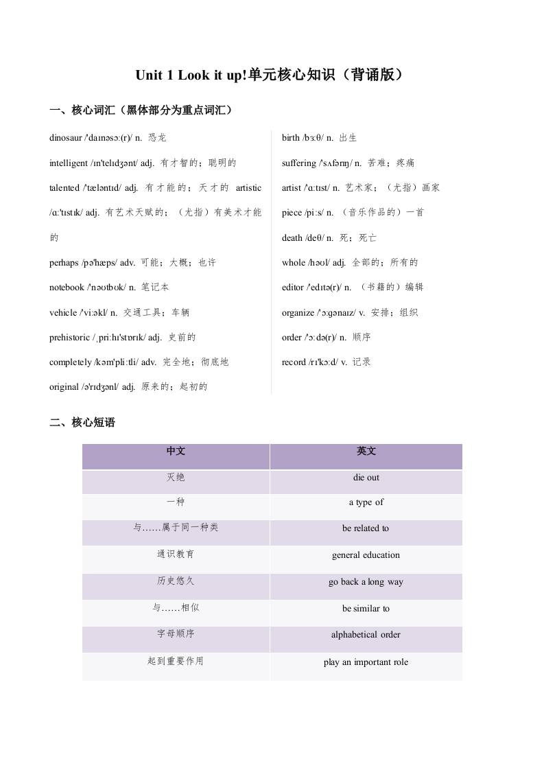 Unit 1 Look it up!(单元核心知识)(背诵版).