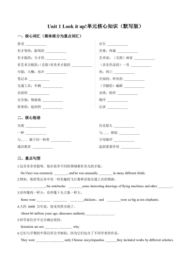 Unit 1 Look it up!(单元核心知识)(默写版).