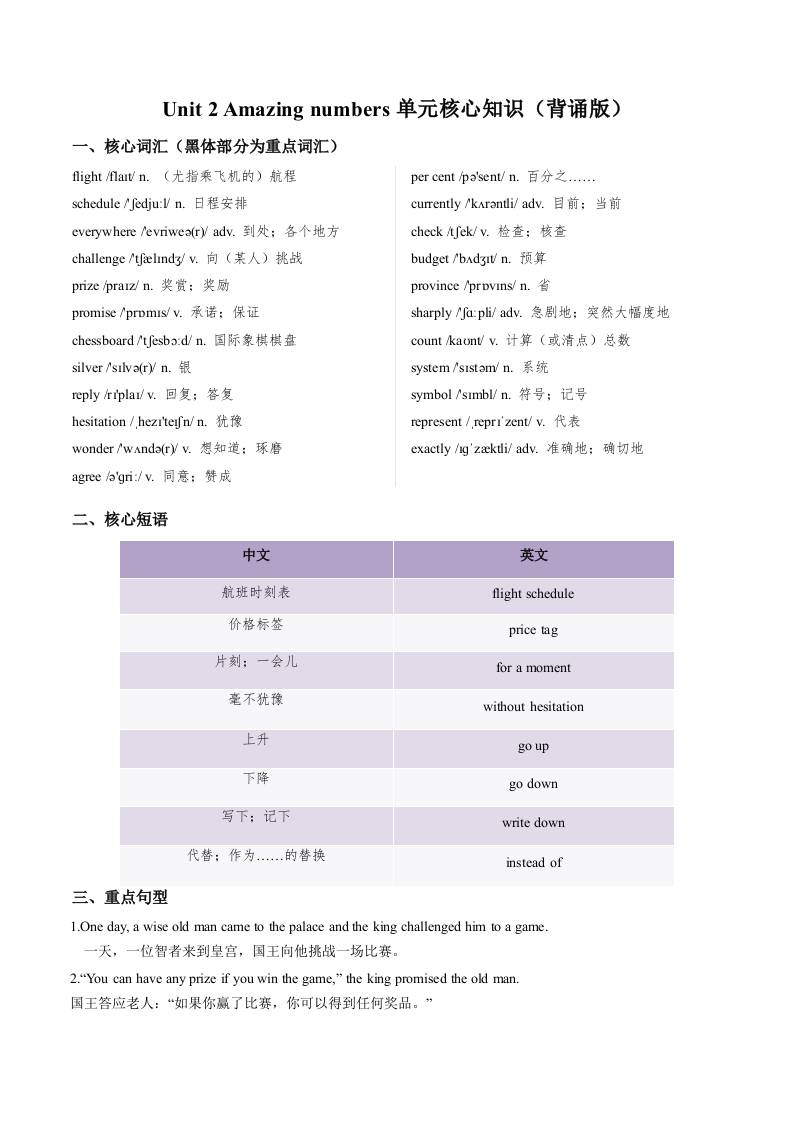 Unit 2 Amazing numbers(单元核心知识)(背诵版).