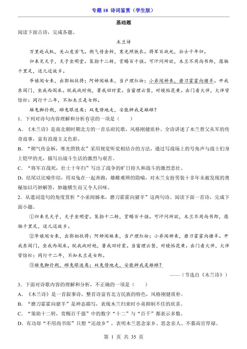 专题18 诗词鉴赏