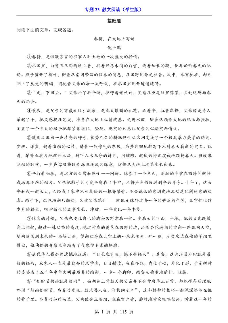 专题23 散文阅读