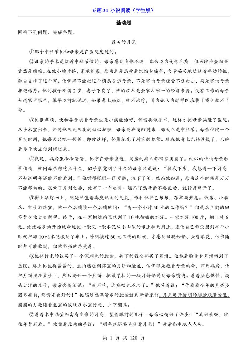 专题24 小说阅读