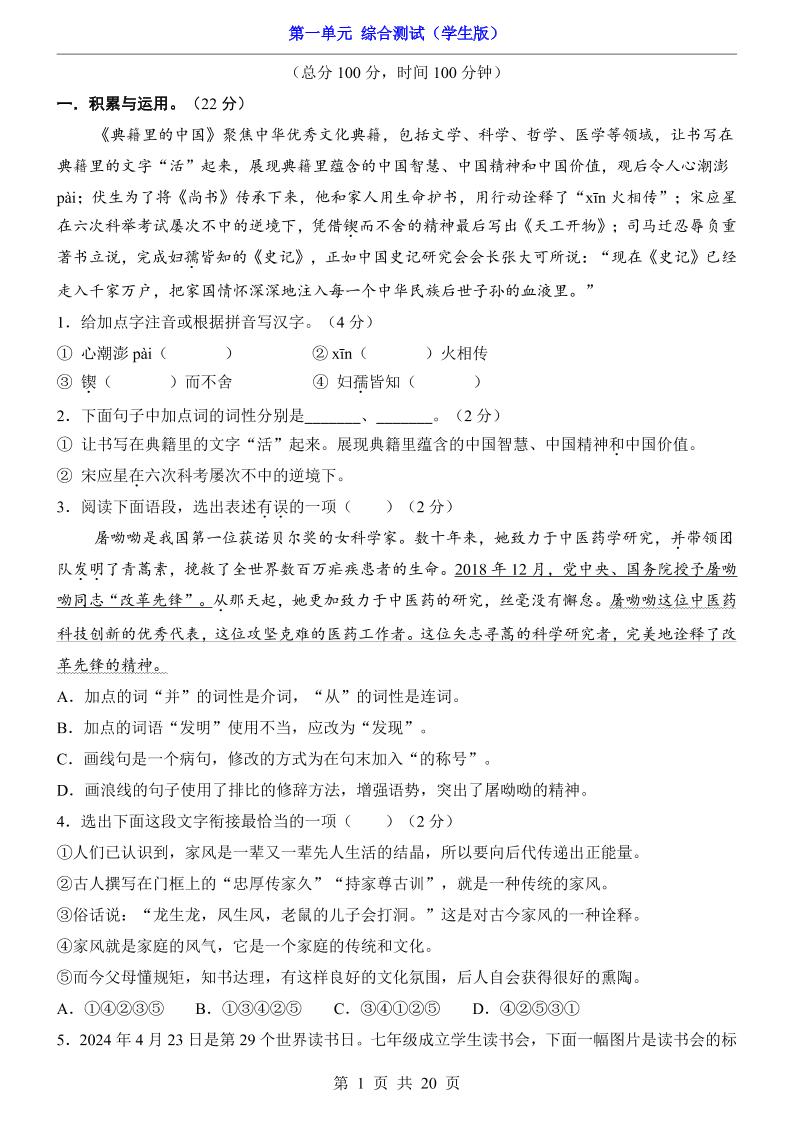 七下第1单元(综合测试).