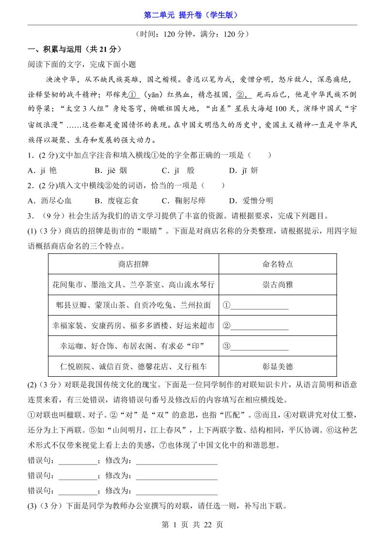 七下第2单元(提升卷).