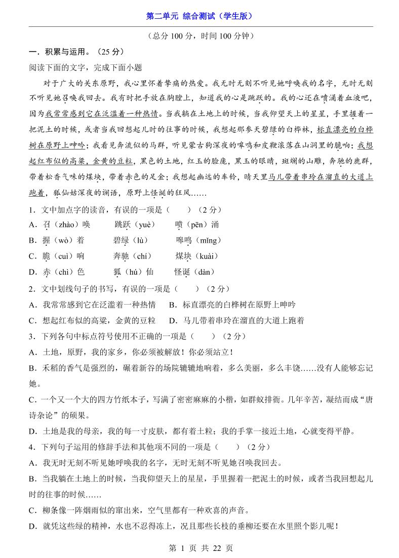 七下第2单元(综合测试).