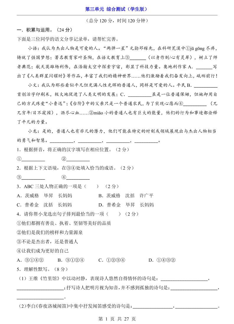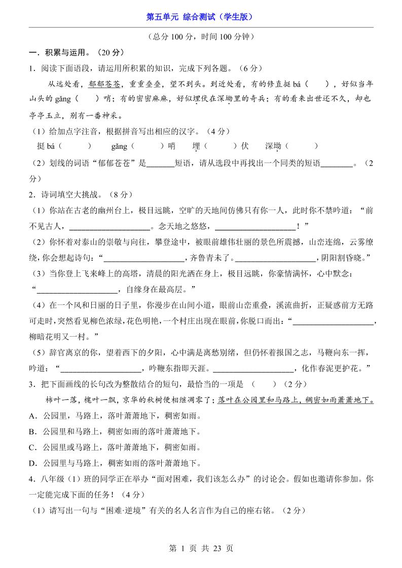 七下第5单元(综合测试).