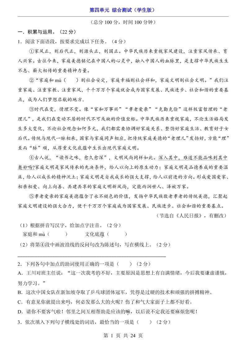 七下第4单元(综合测试).