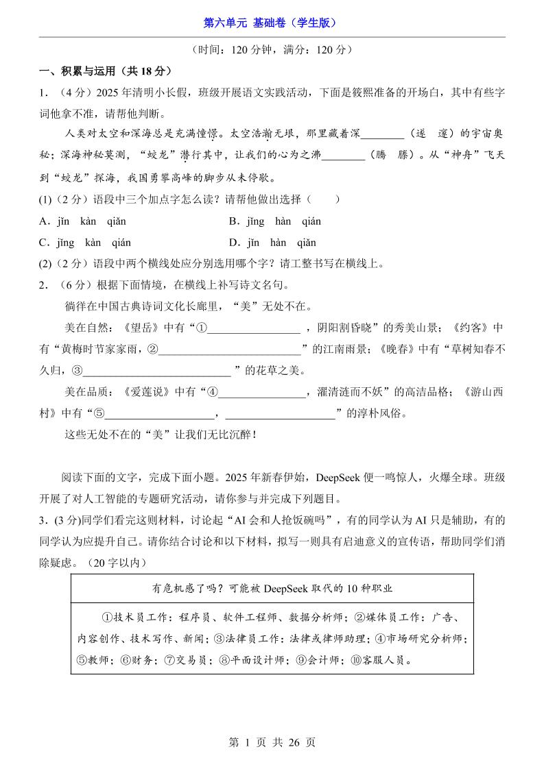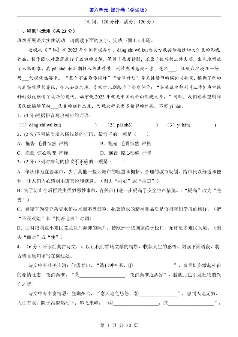 七下第6单元(提升卷).
