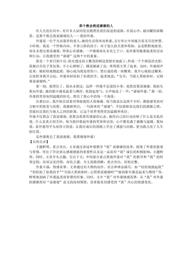 1.【第一单元那个教会我说谢谢的人】七下语文作文示例