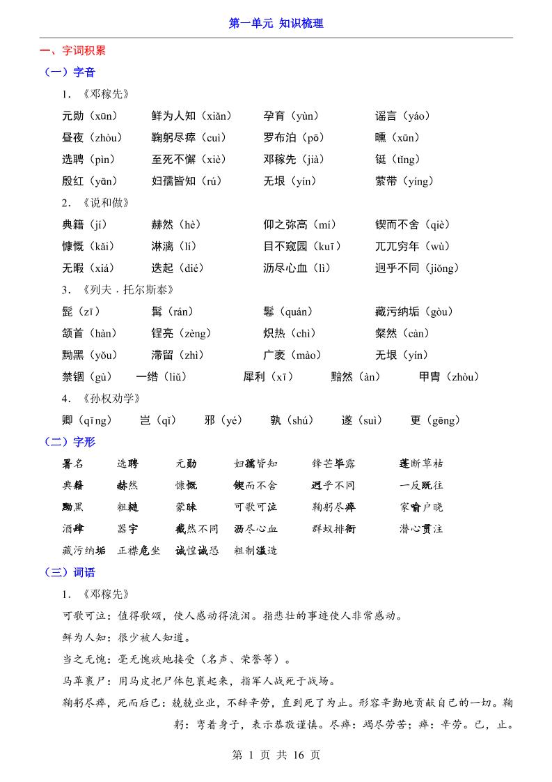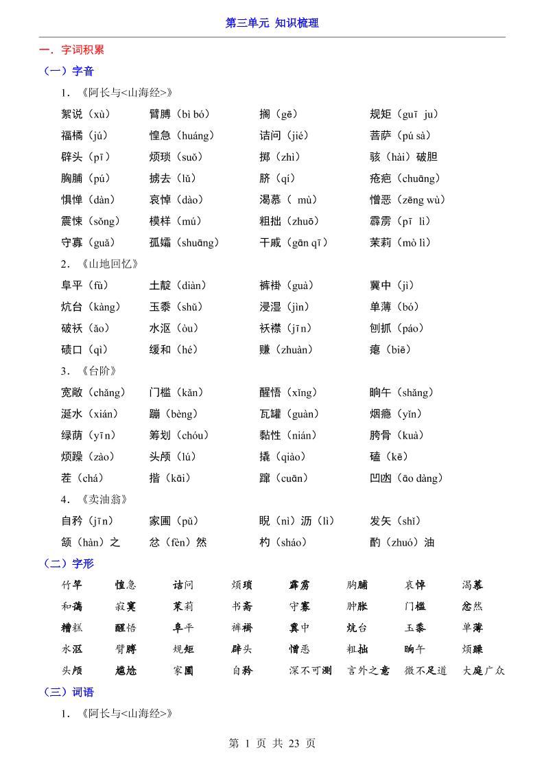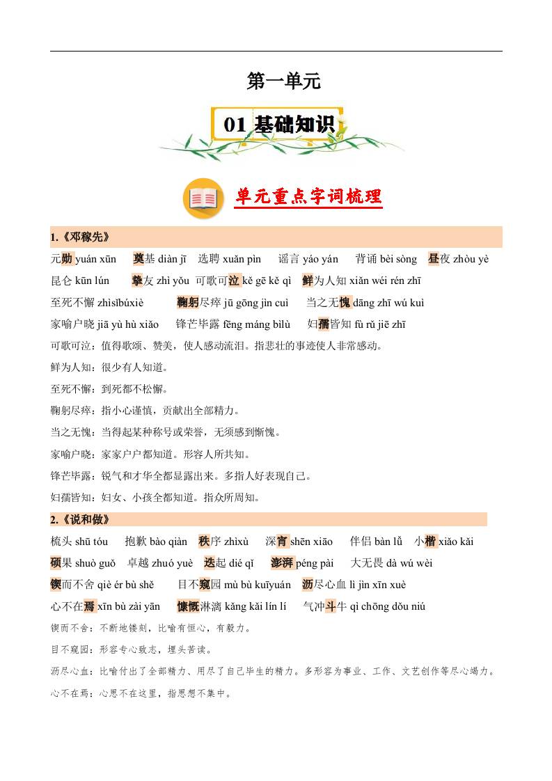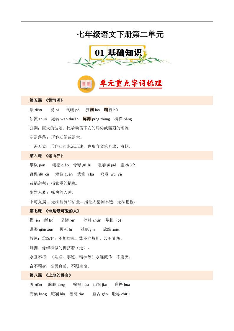 1.第一单元【速记清单】-2024-2025学年七年级语文下册(统编版2024)
