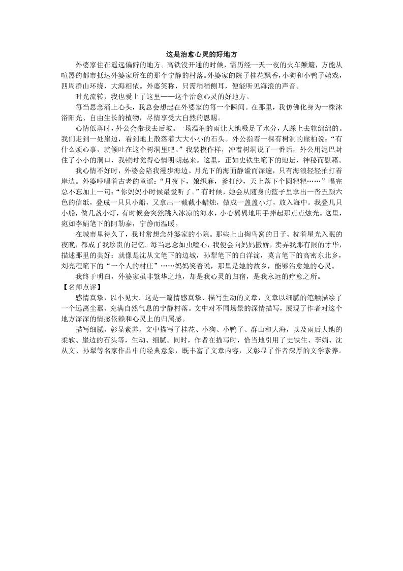 2.【第二单元这是治愈心灵的好地方】七下语文作文示例