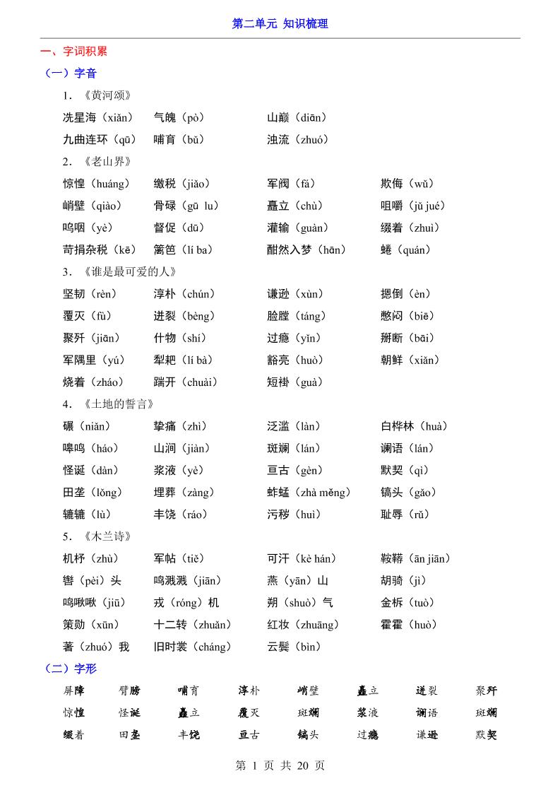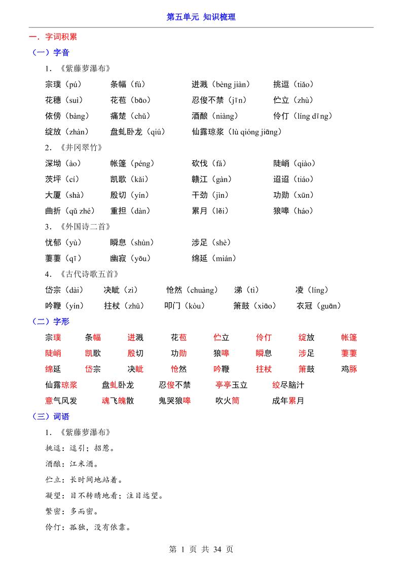 5.第五单元【速记清单】-2024-2025学年七年级语文下册单元速记·巧练(统编版2024)