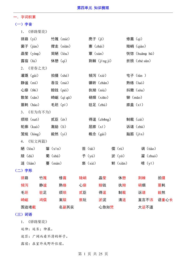4.第四单元【速记清单】-2024-2025学年七年级语文下册单元速记·巧练(统编版2024)