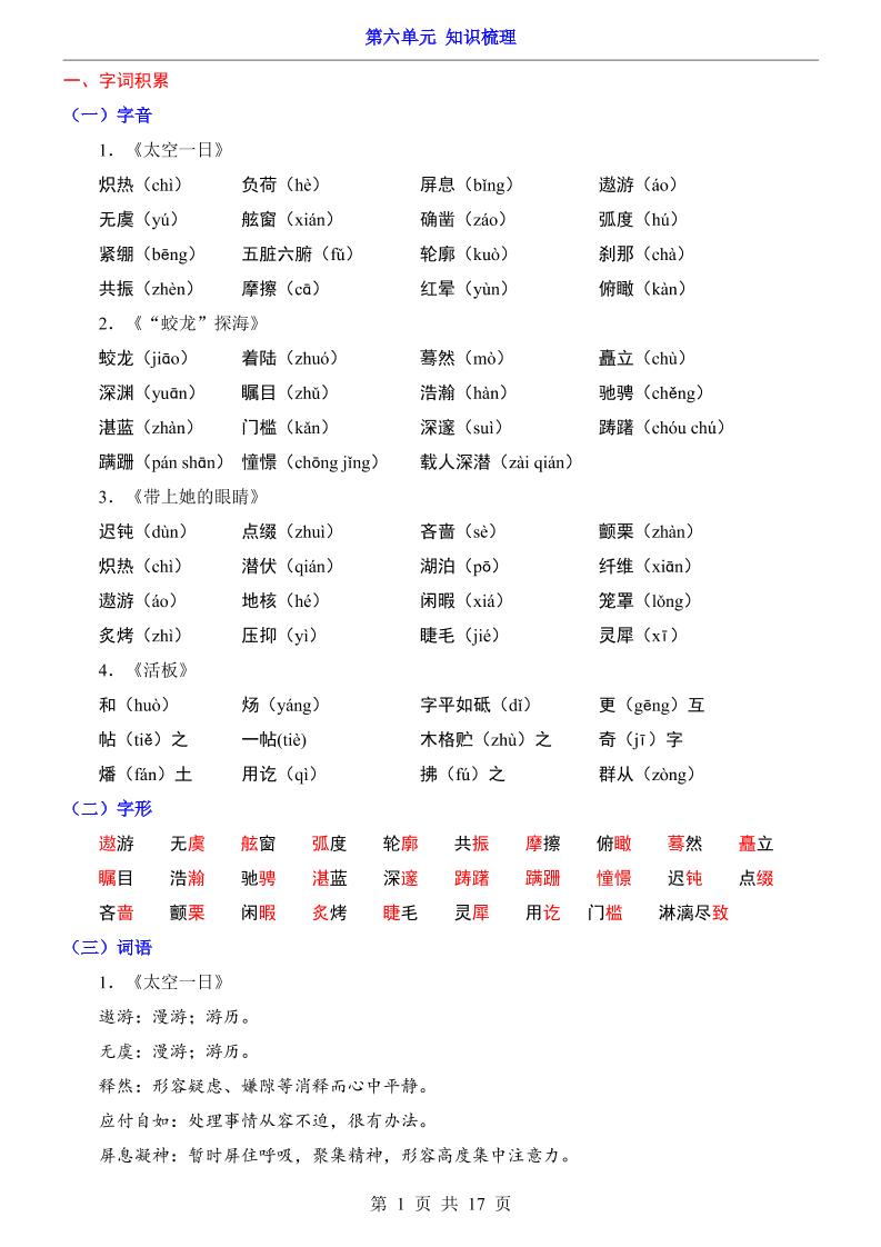 6.第六单元【速记清单】-2024-2025学年七年级语文下册单元速记·巧练(统编版2024)
