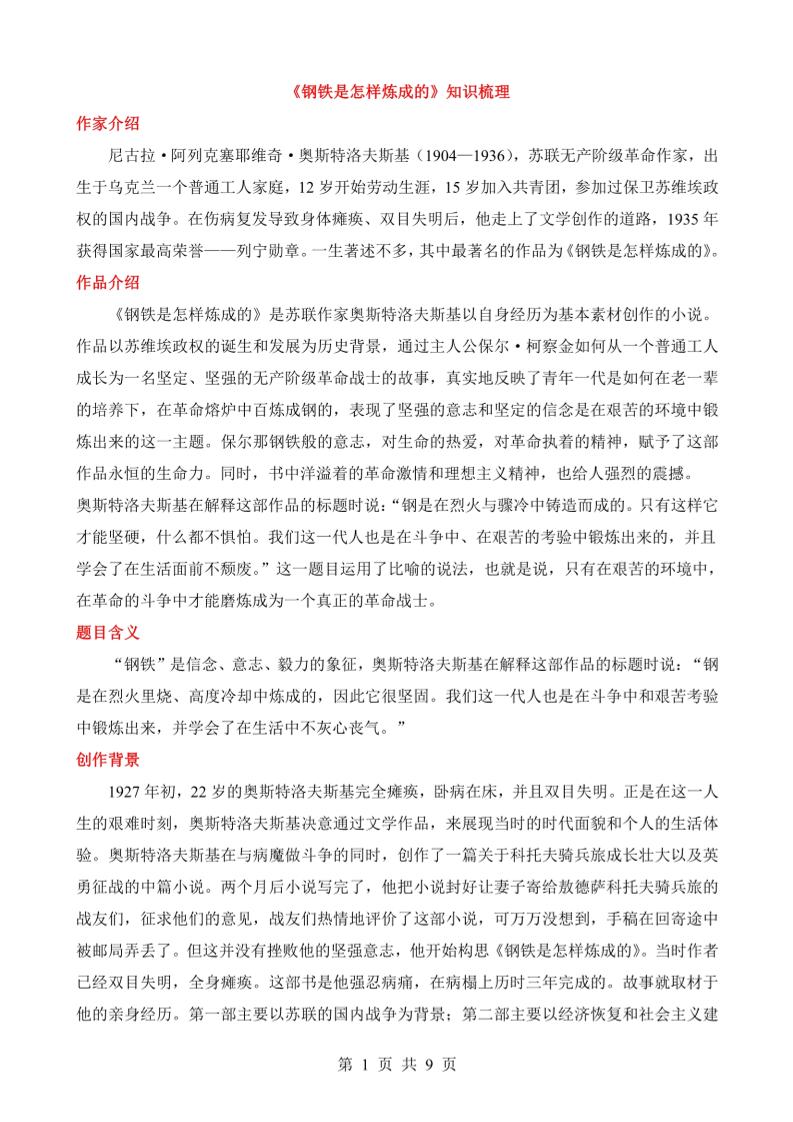 《钢铁是怎样炼成的》知识梳理