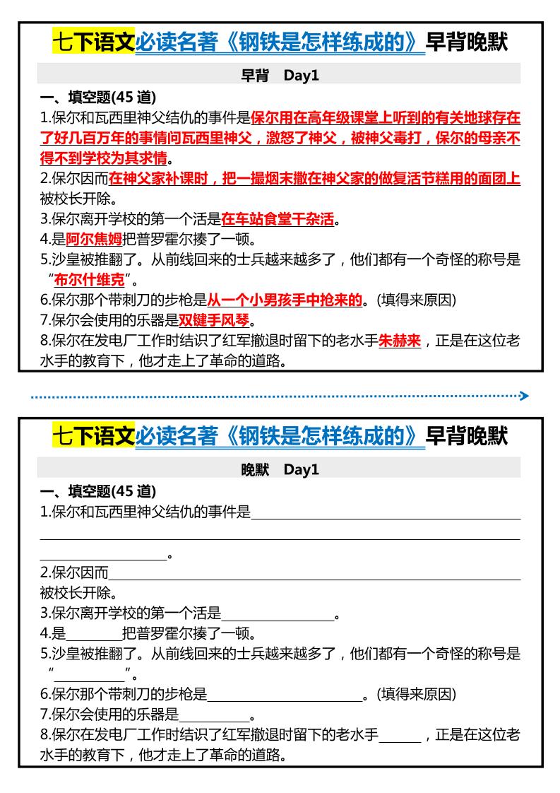 七下语文必读名著《钢铁是怎样练成的》早背晚默