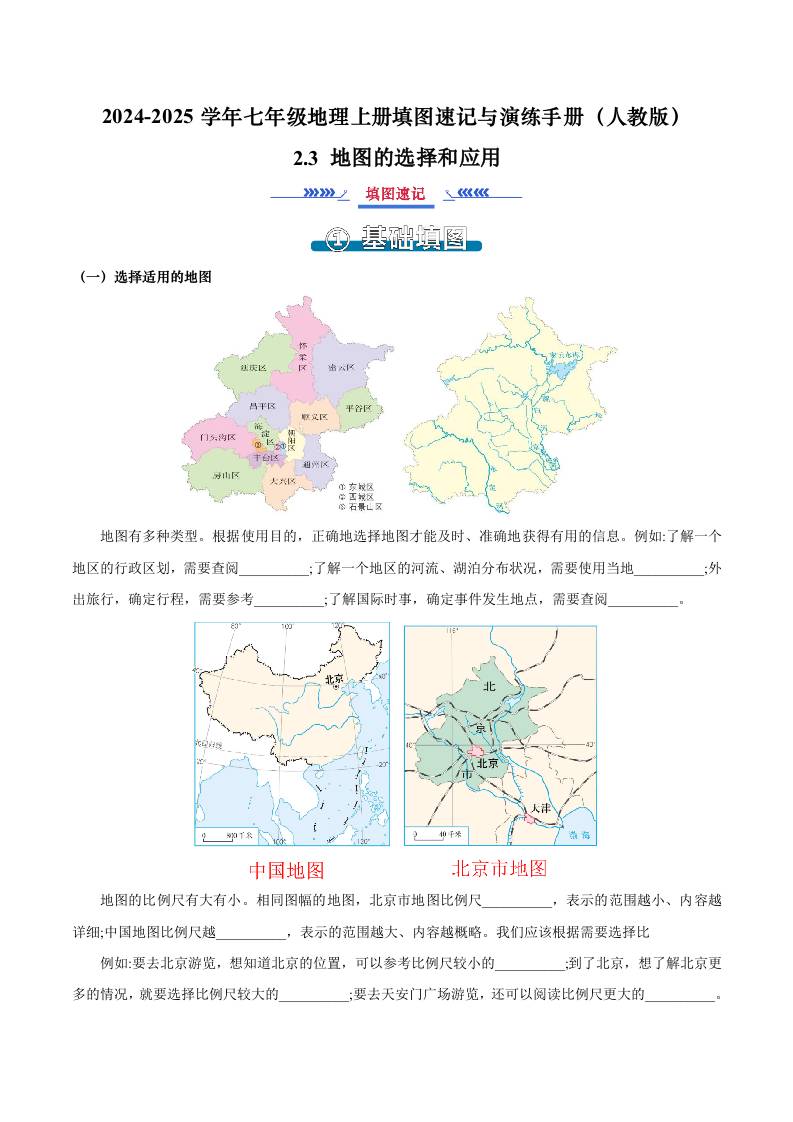 2.3 地图的选择和应用(填图速记)-2024-2025学年七年级地理上册填图速记与演练手册(人教版2024)(解析版)