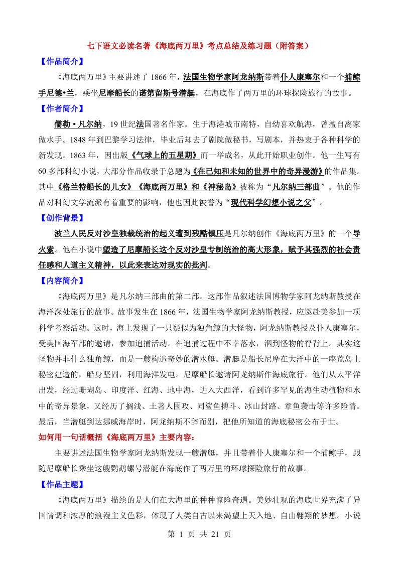 七下选读名著《哈利·波特与死亡圣器》要点梳理与练习