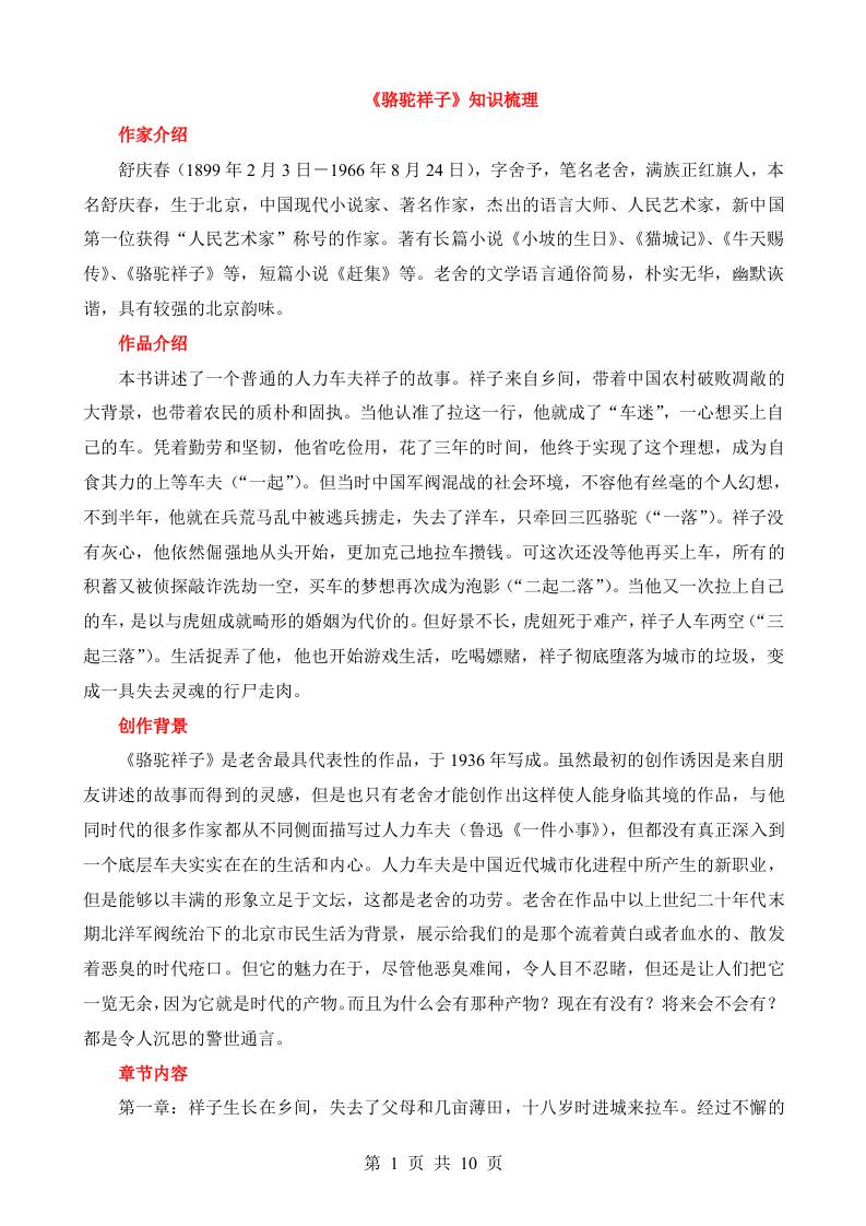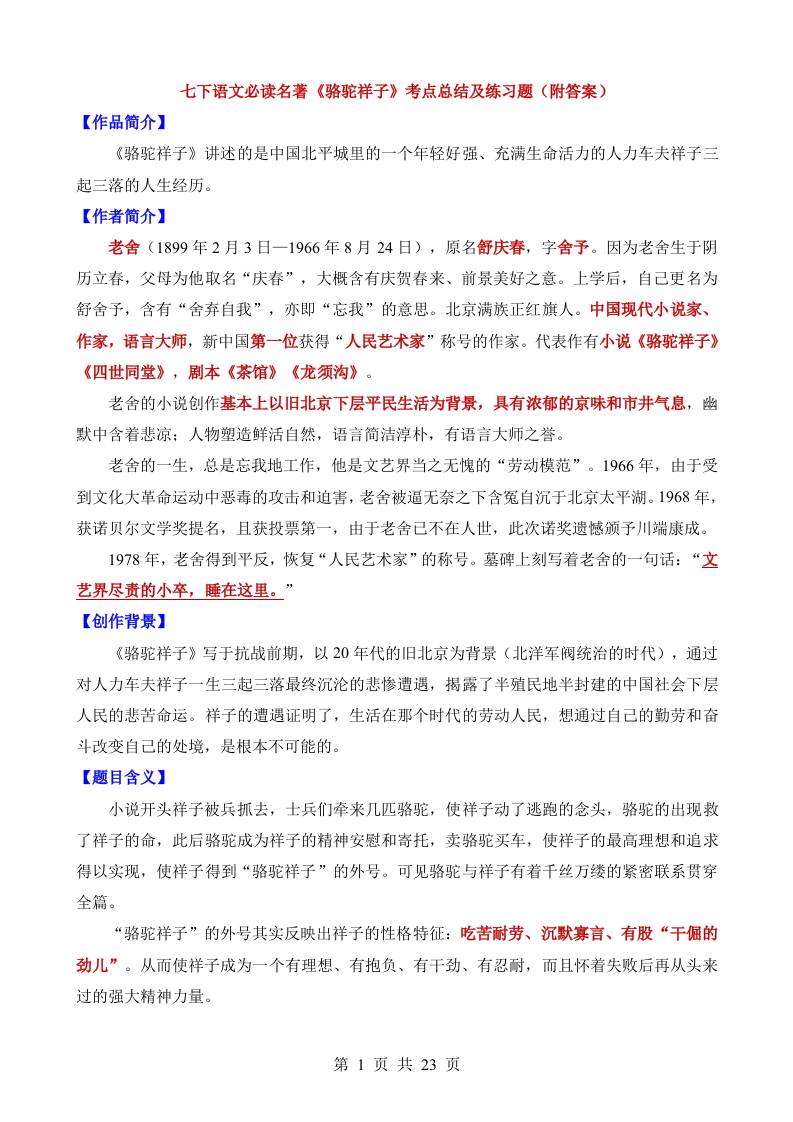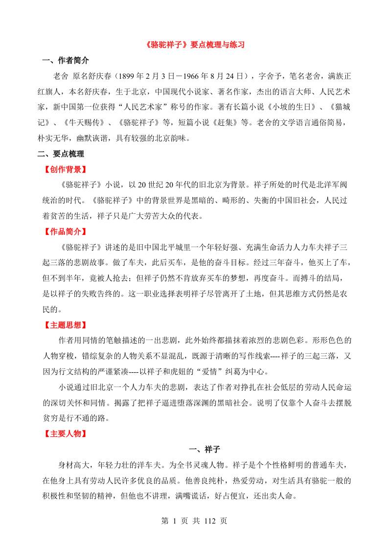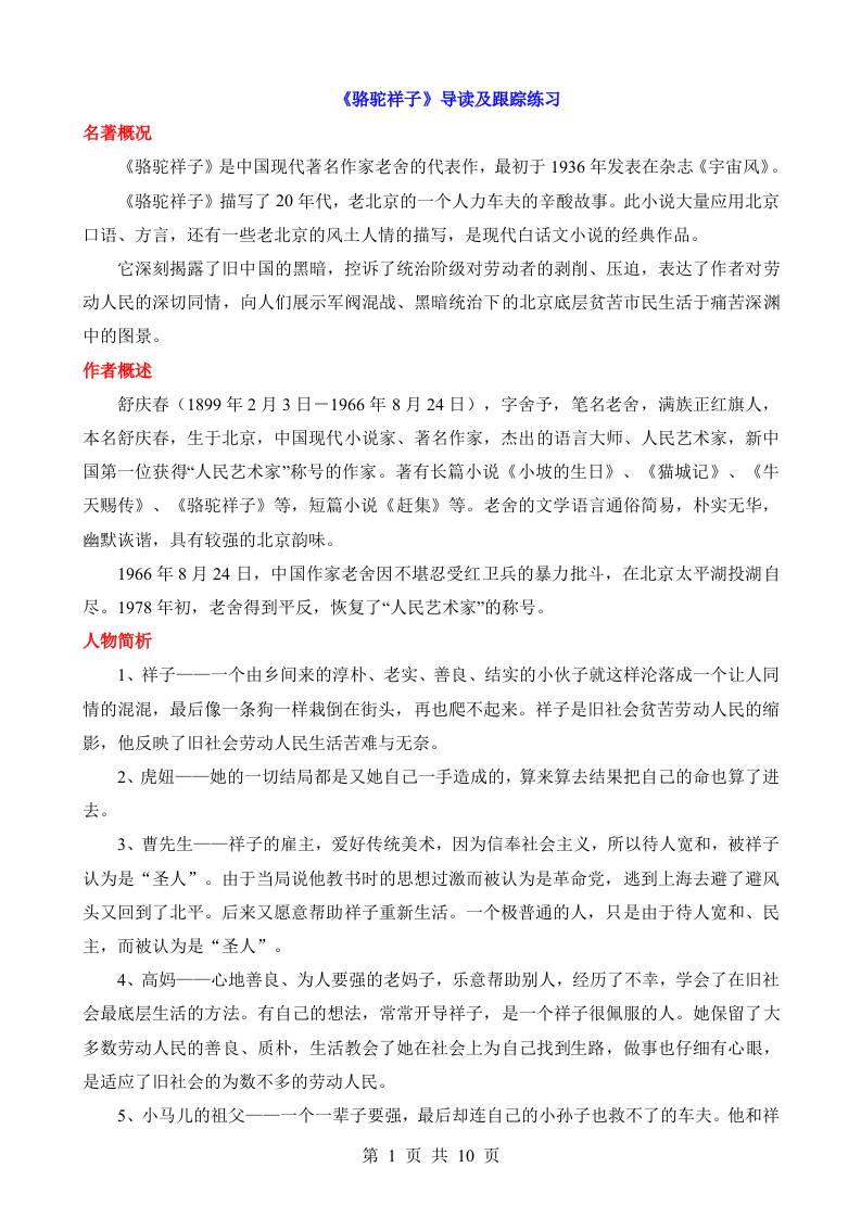七下必读名著《骆驼祥子》导读及跟踪练习