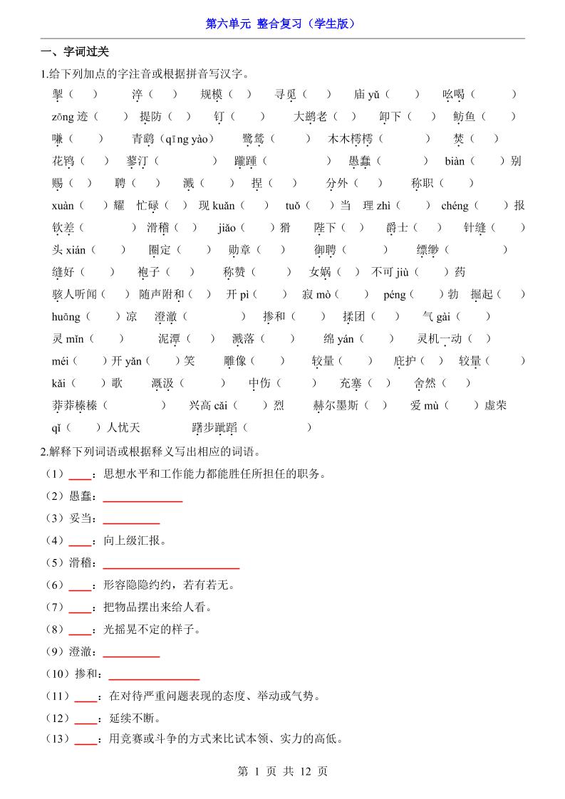 第6单元(整合复习)