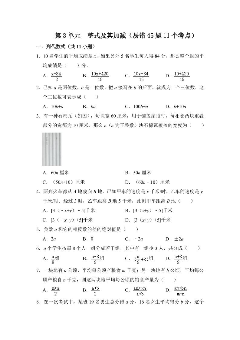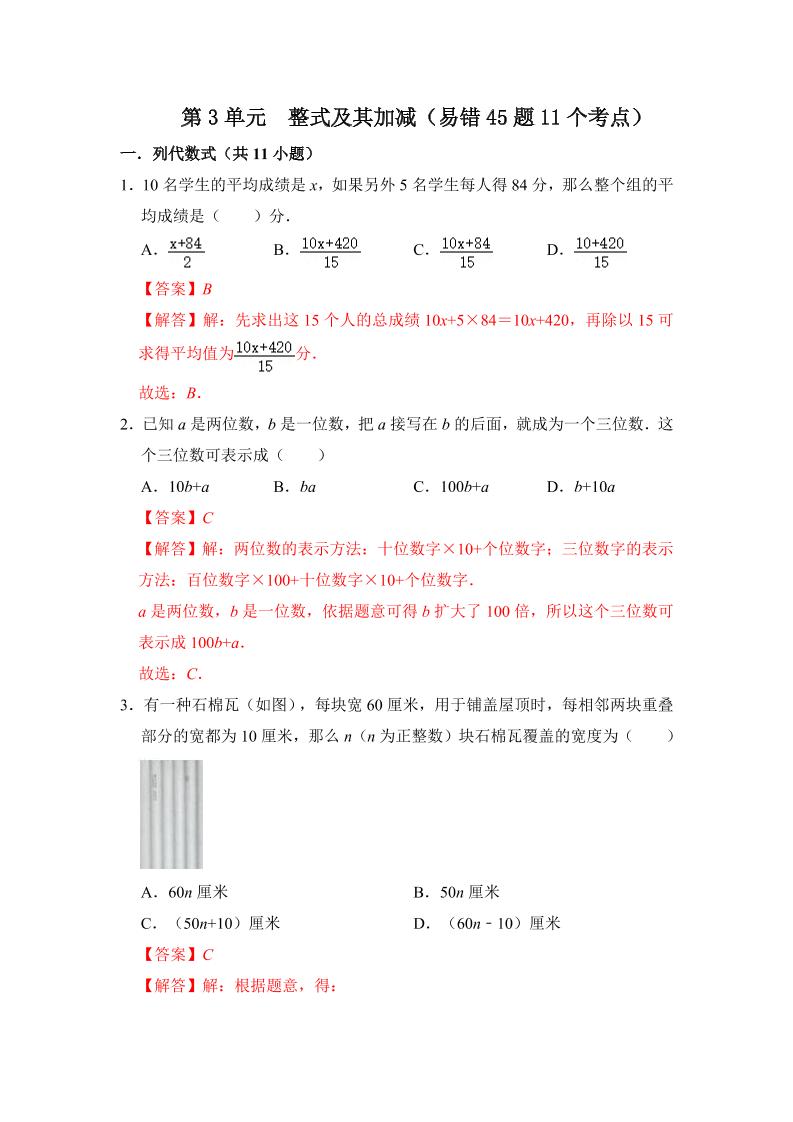 10.第三章 整式及其加减(易错45题11个考点)(解析版)
