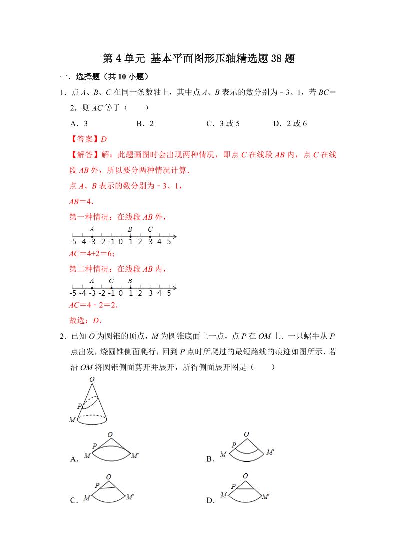 11.第四章 基本平面图形(压轴精选题38题)(解析版)