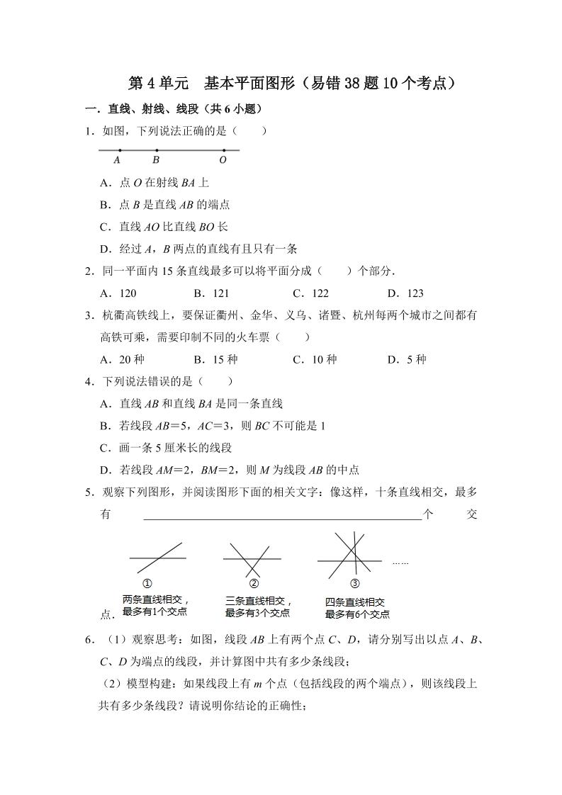 14.第四章 基本平面图形(易错38题11个考点)(原卷版)