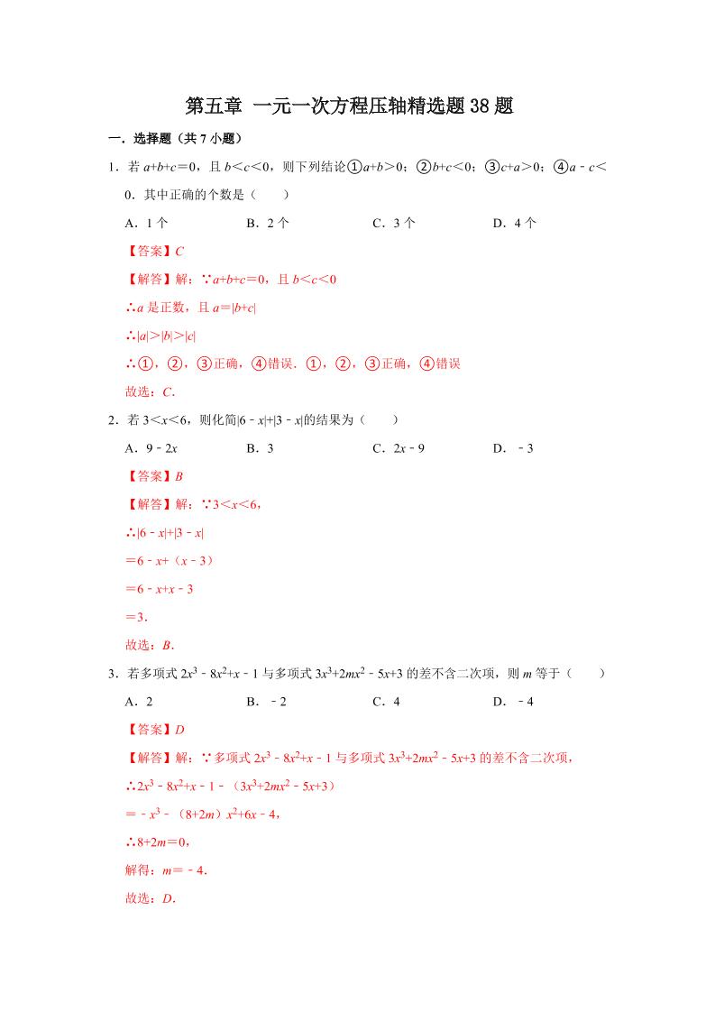 17.第五章 一元一次方程压轴精选题38题(解析版)