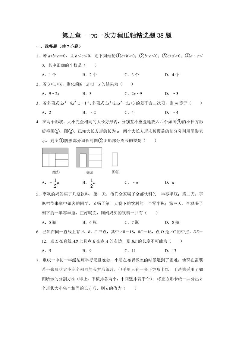 18.第五章 一元一次方程压轴精选题38题(原卷版)