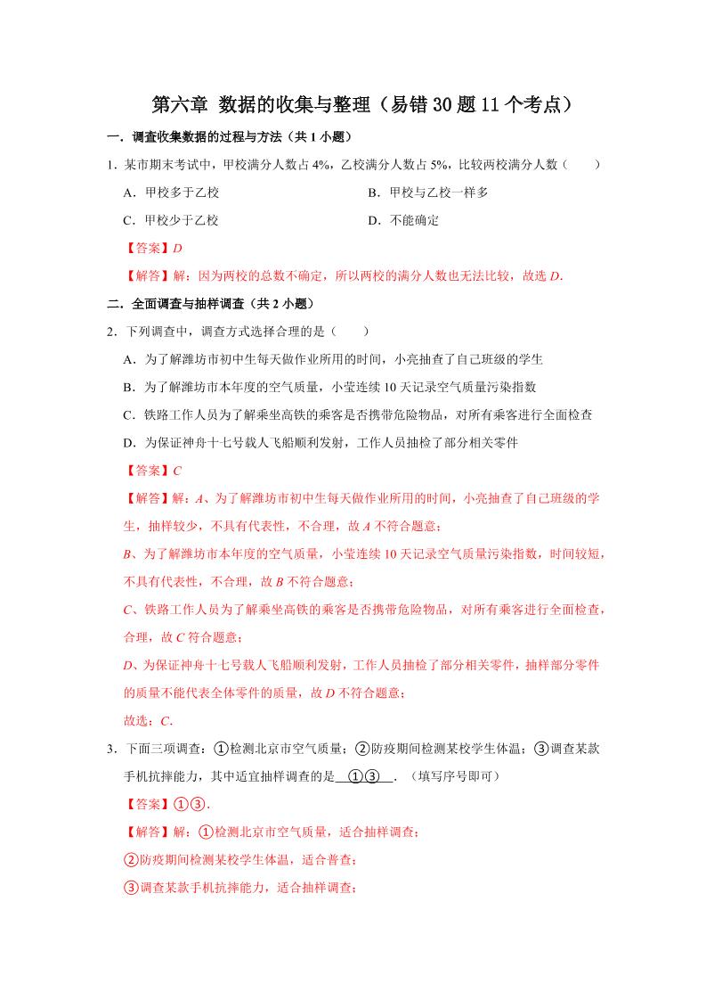 19.第六章 数据的收集与整理(易错30题11个考点)(解析版)