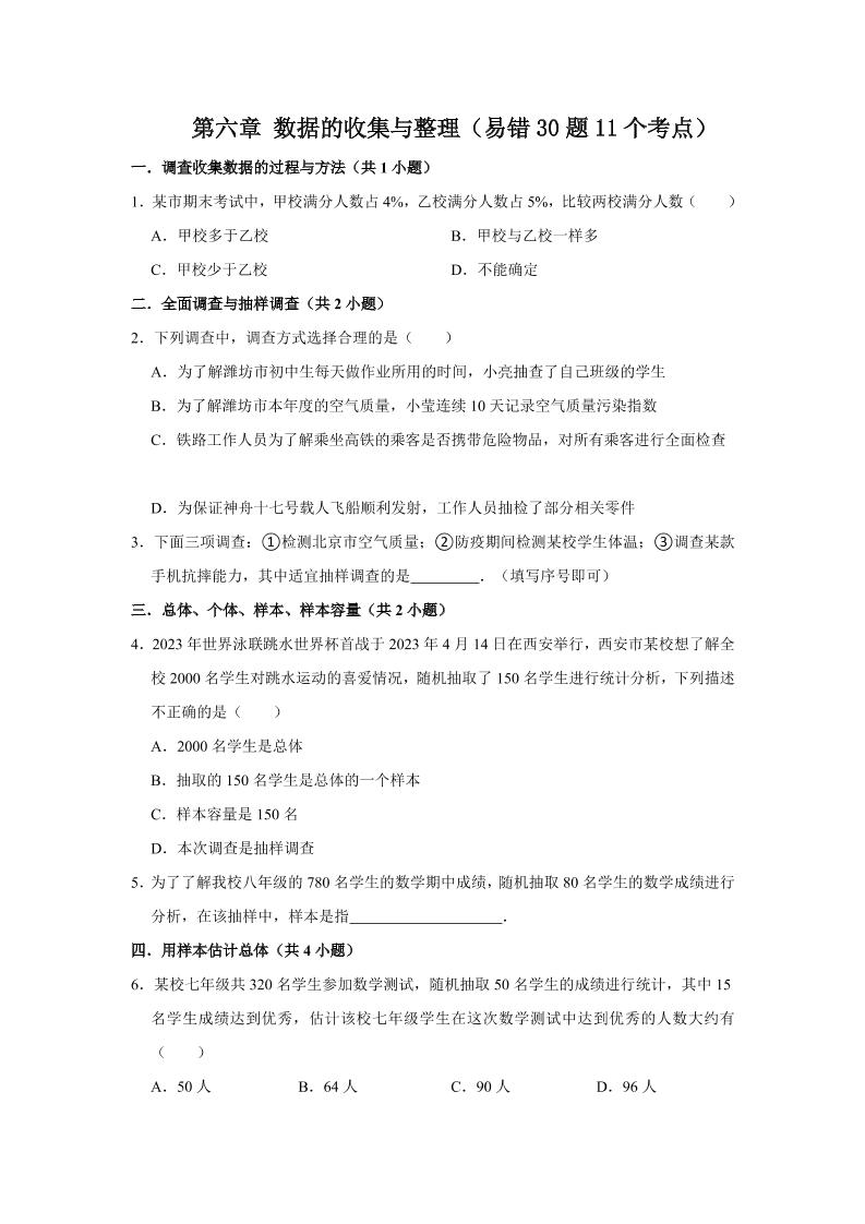 20.第六章 数据的收集与整理(易错30题11个考点)(原卷版)