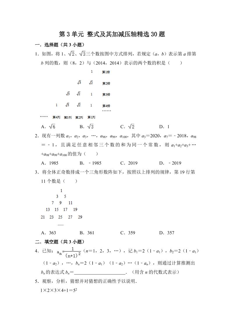 8.第三章 整式及其加减(压轴精选30题)(原卷版)