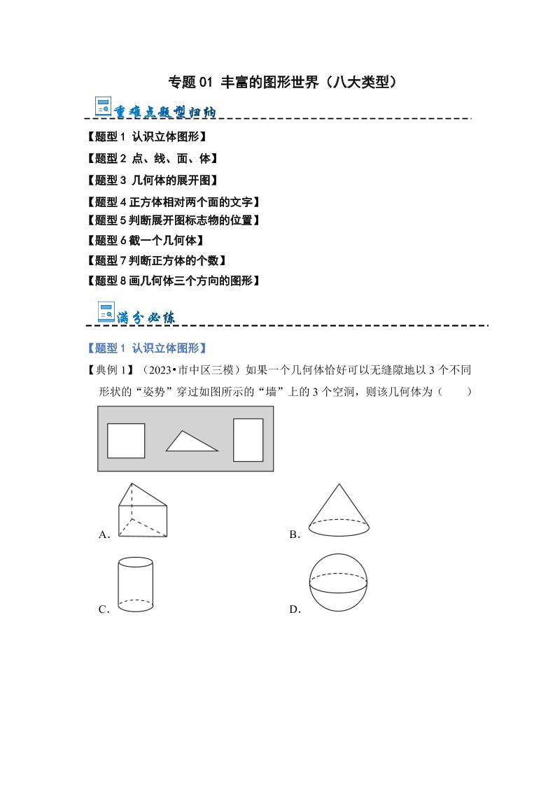 专题01 丰富的图形世界(八大题型)(原卷版)