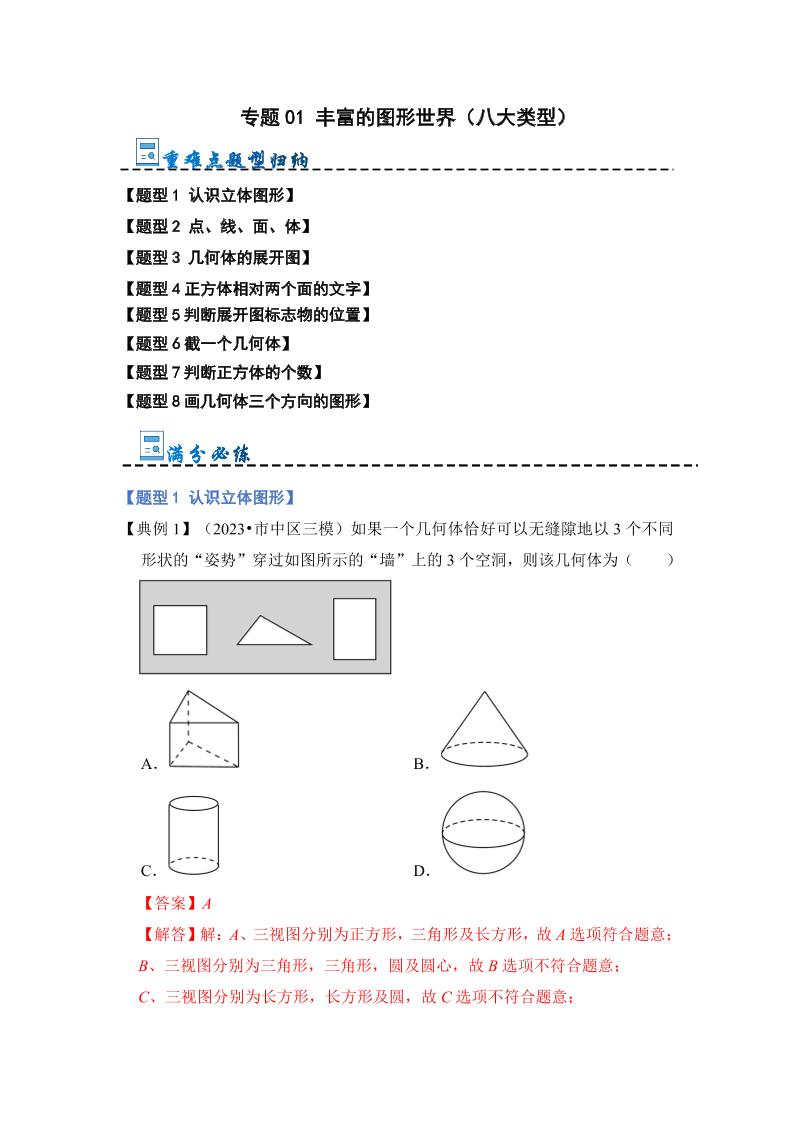 专题01 丰富的图形世界(八大题型)(解析版)