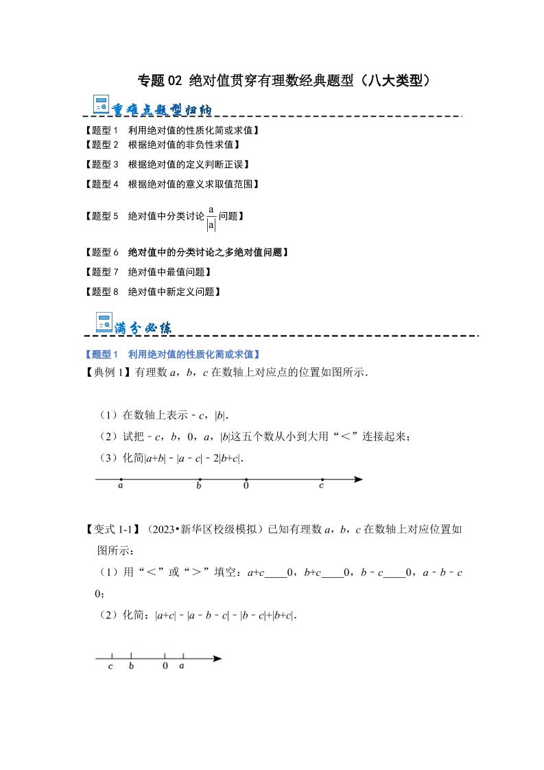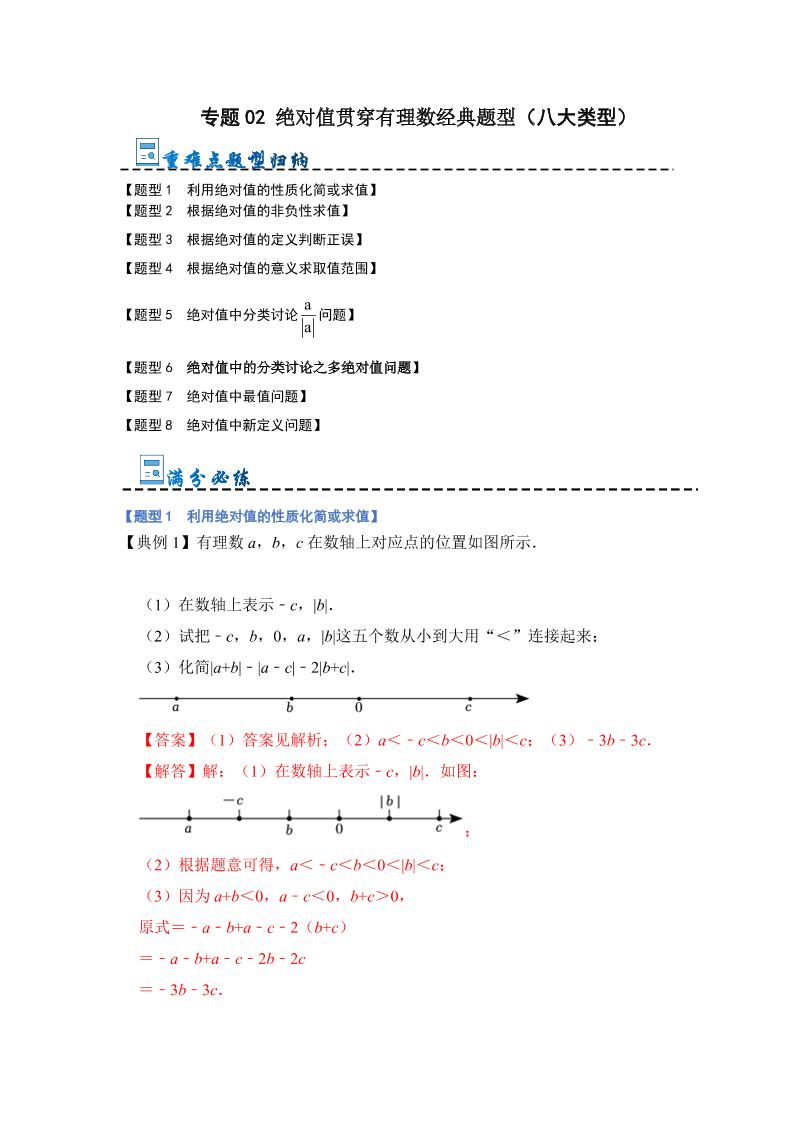 专题02 绝对值贯穿有理数经典题型(八大类型)(解析版)