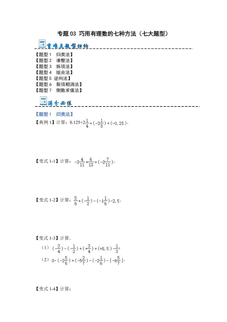 专题03 巧用有理数的七种方法(七大题型)(原卷版)