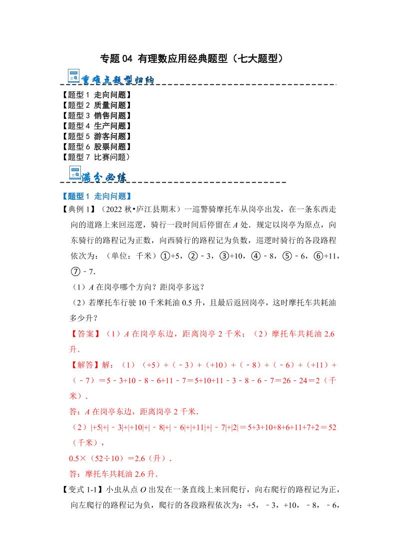 专题04 有理数应用经典题型(七大题型)(解析版)