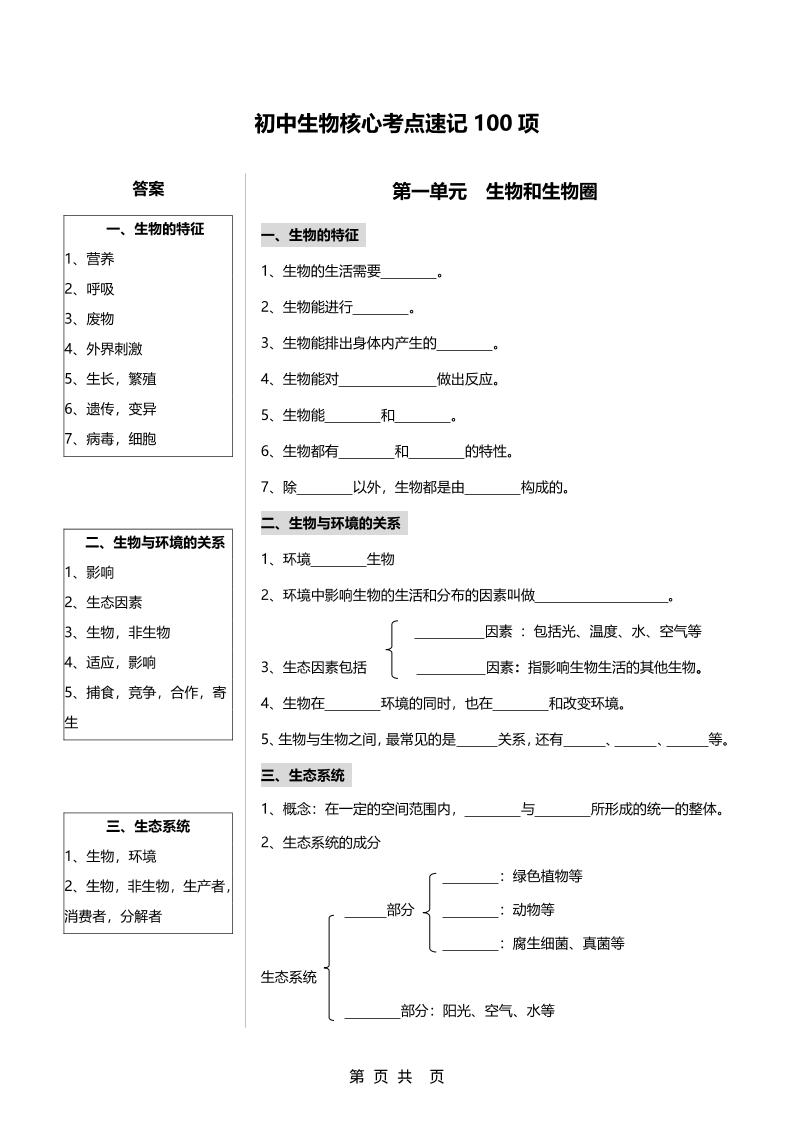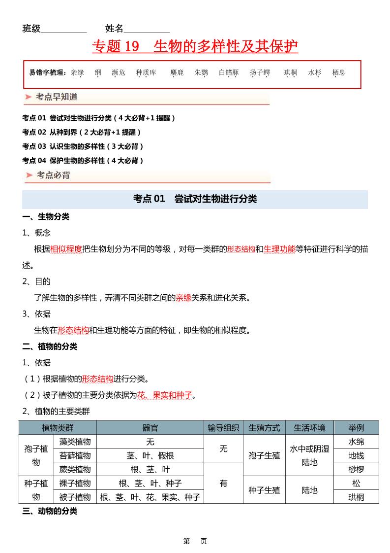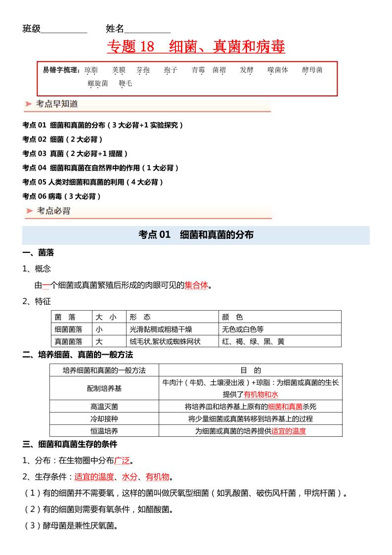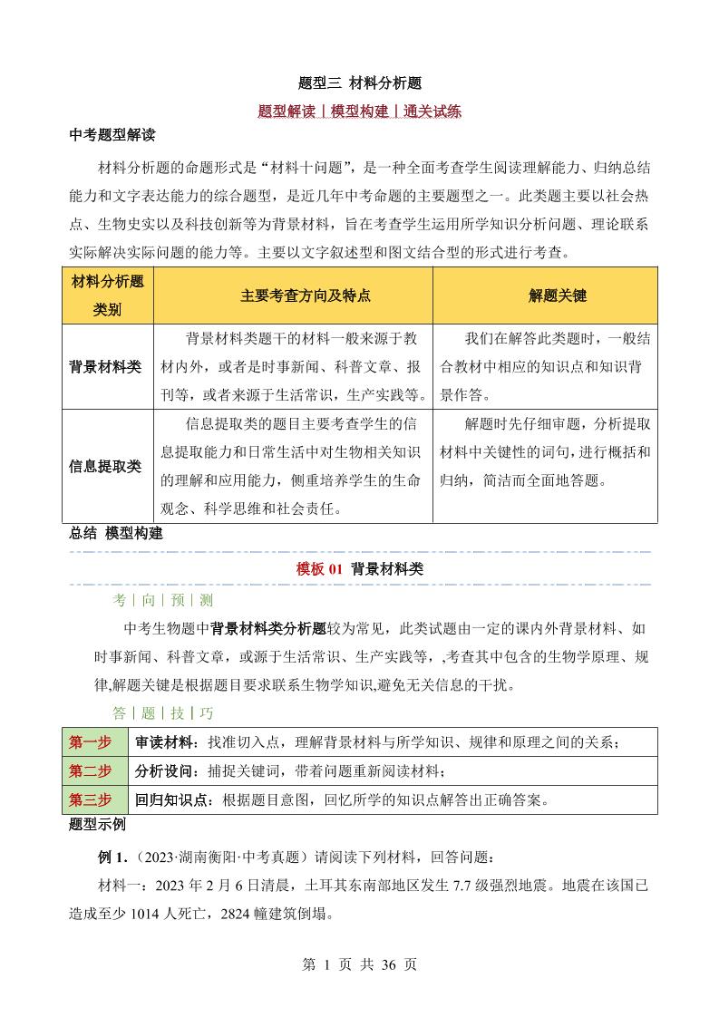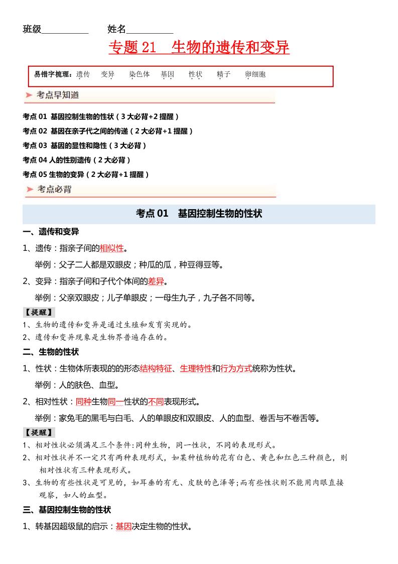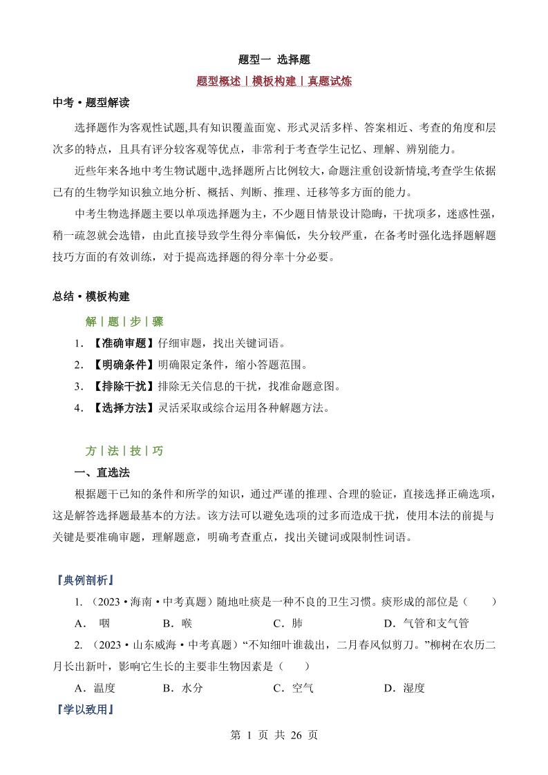 1生物(一)2025年中考考前20天终极冲刺攻略(解析版)