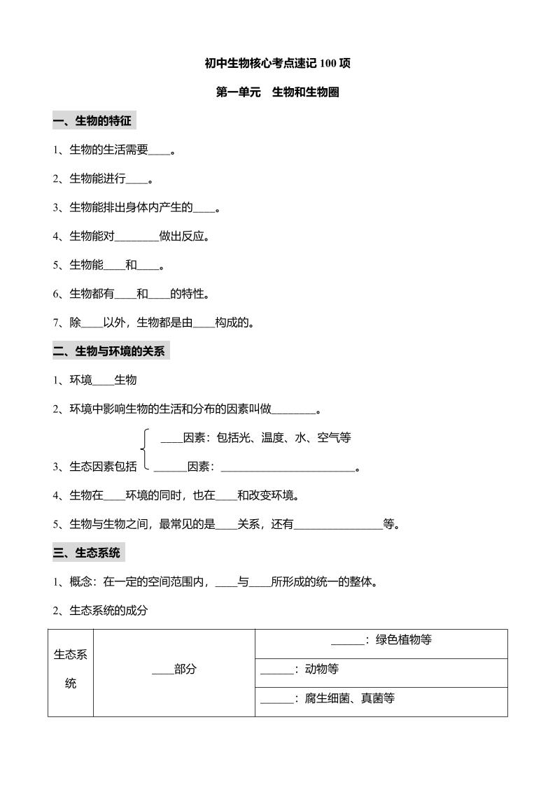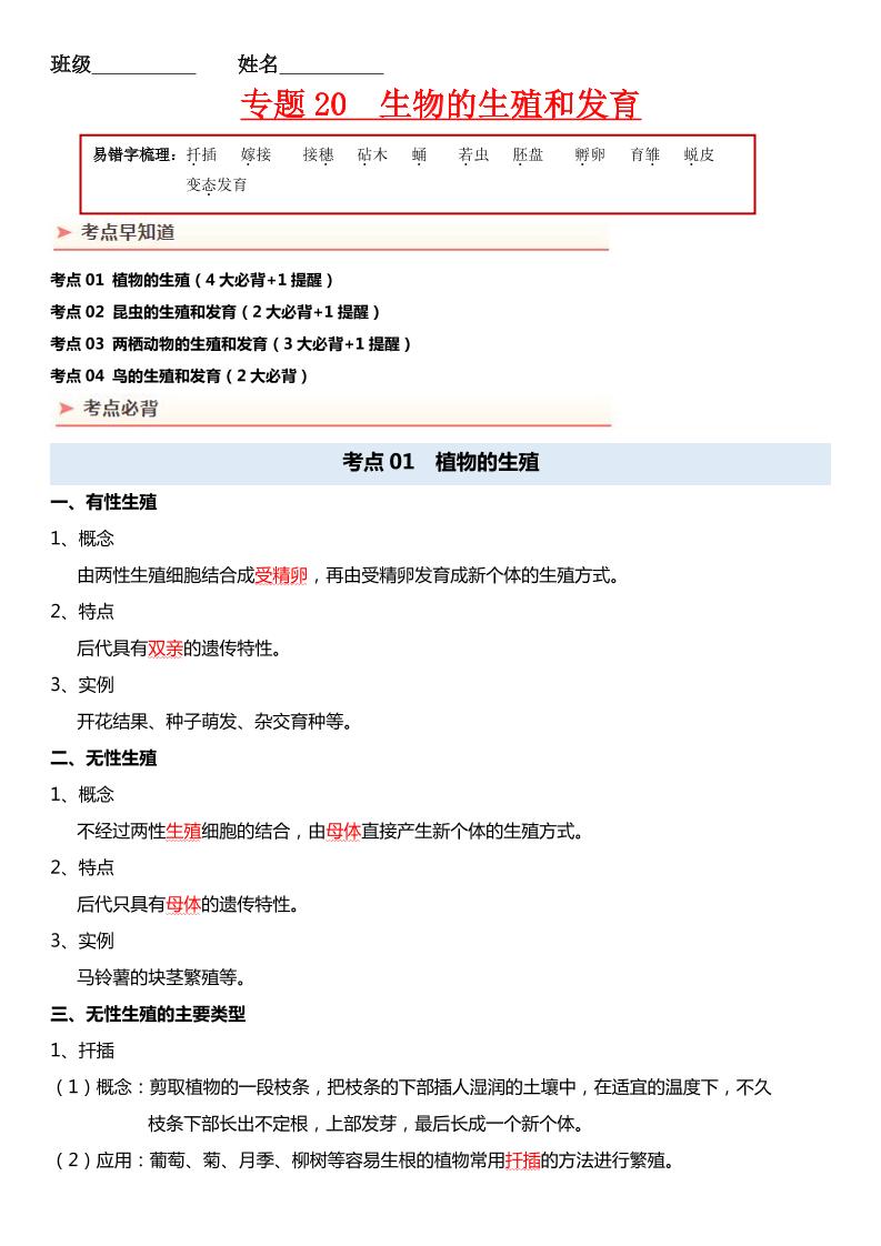 2生物(一)2025年中考考前20天终极冲刺攻略(原卷版)