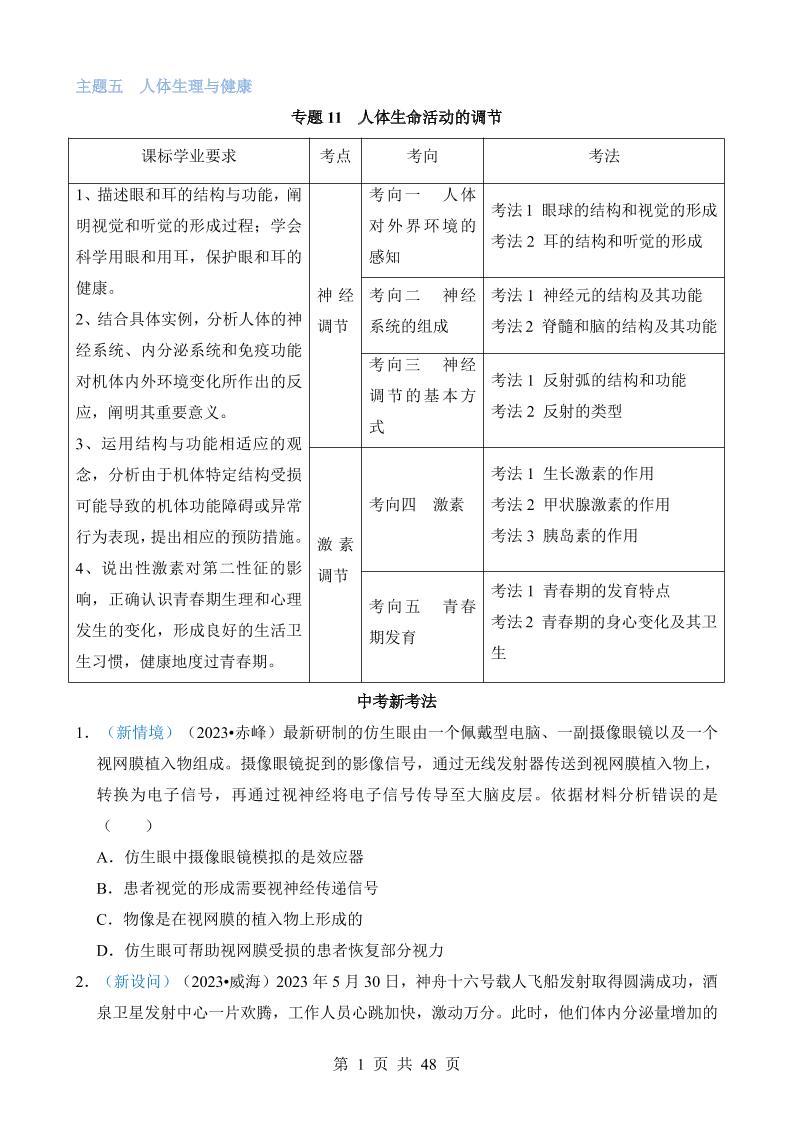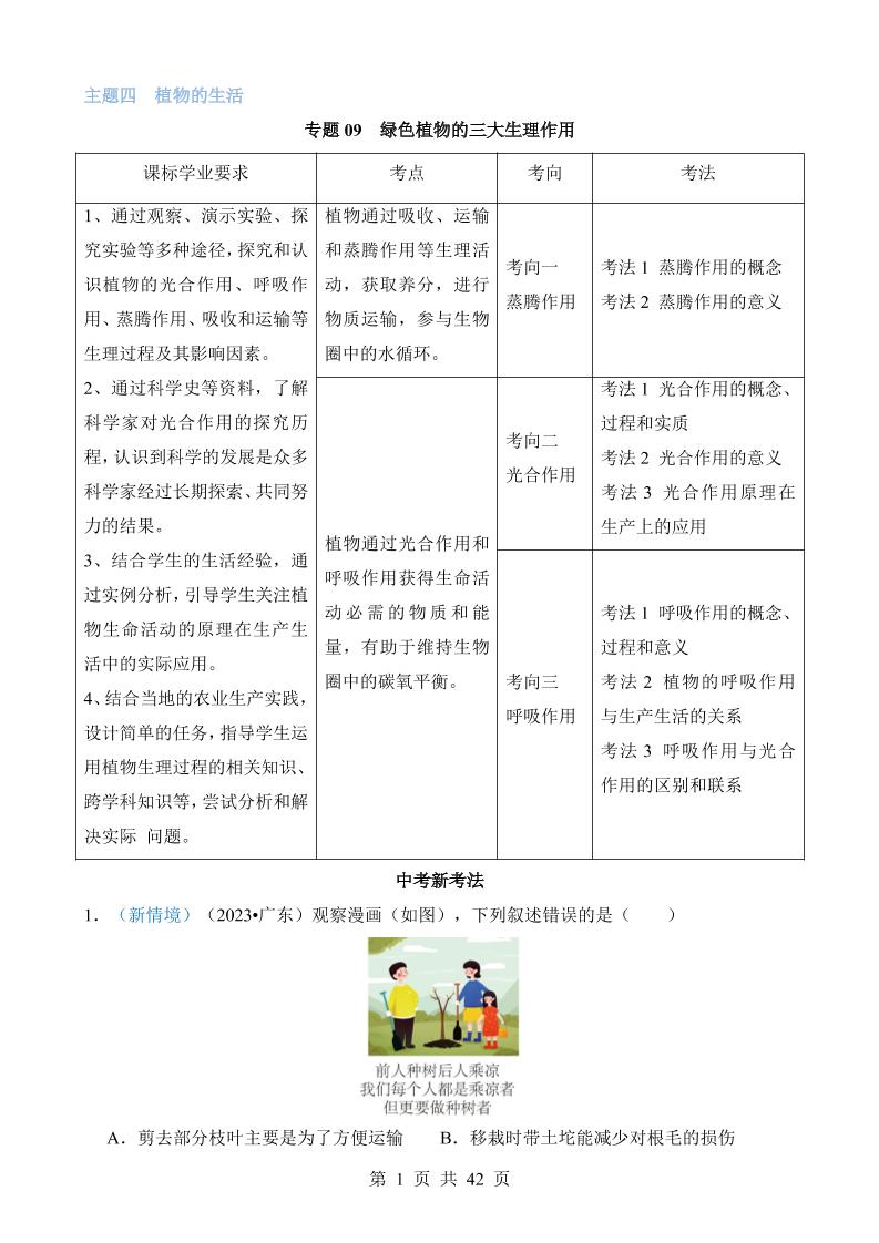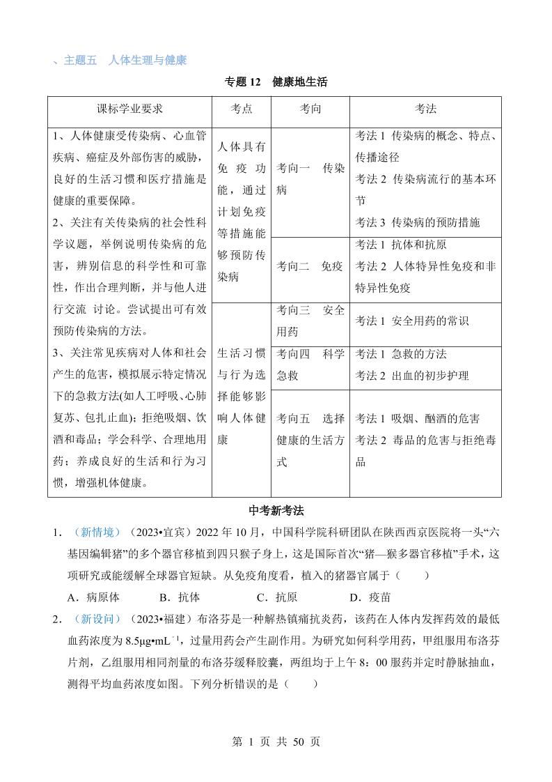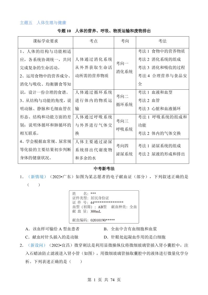 专题10 人体的营养、呼吸、物质运输和废物排出