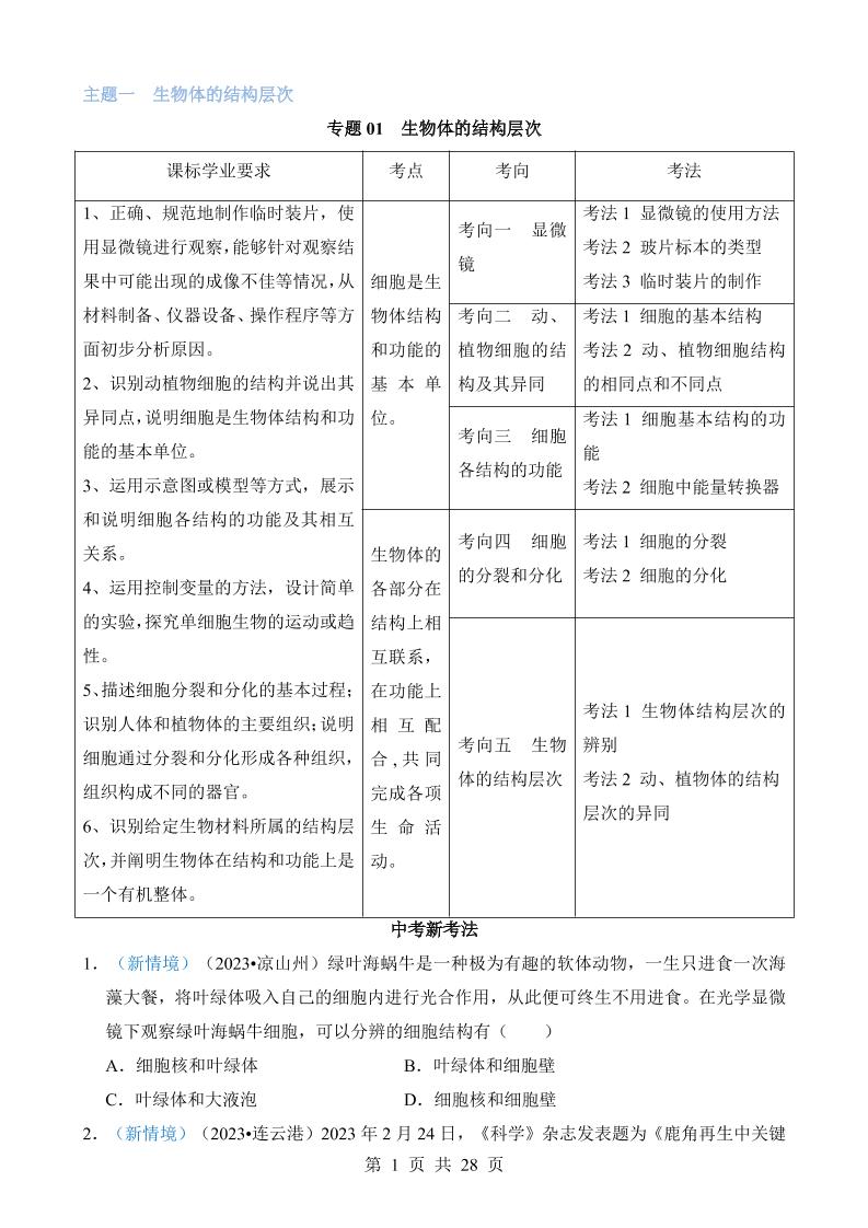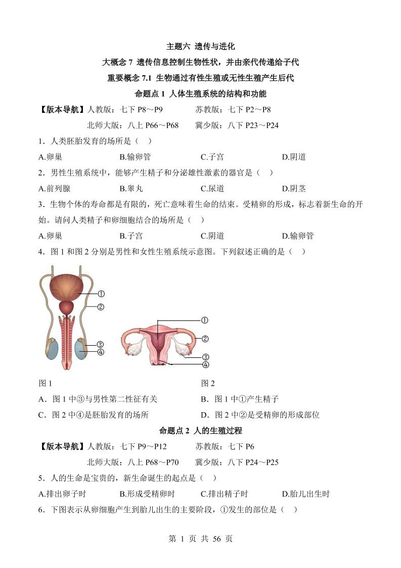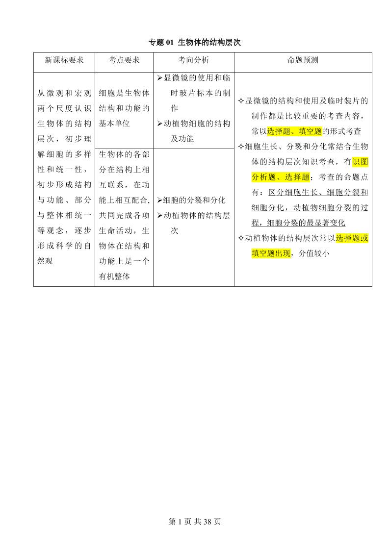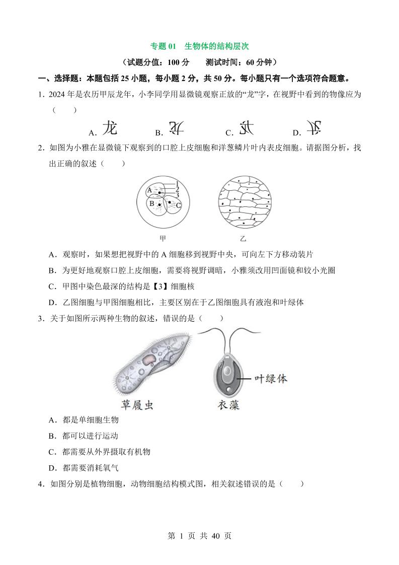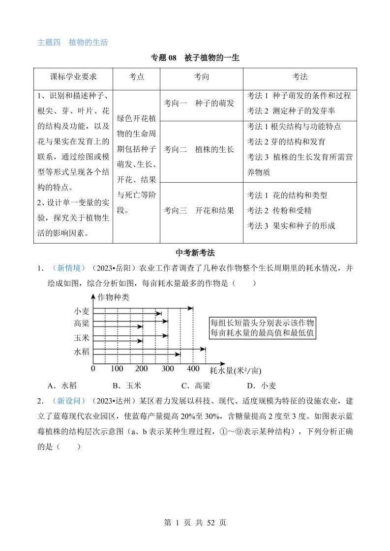 专题10 人体的营养、呼吸、物质运输和废物排出