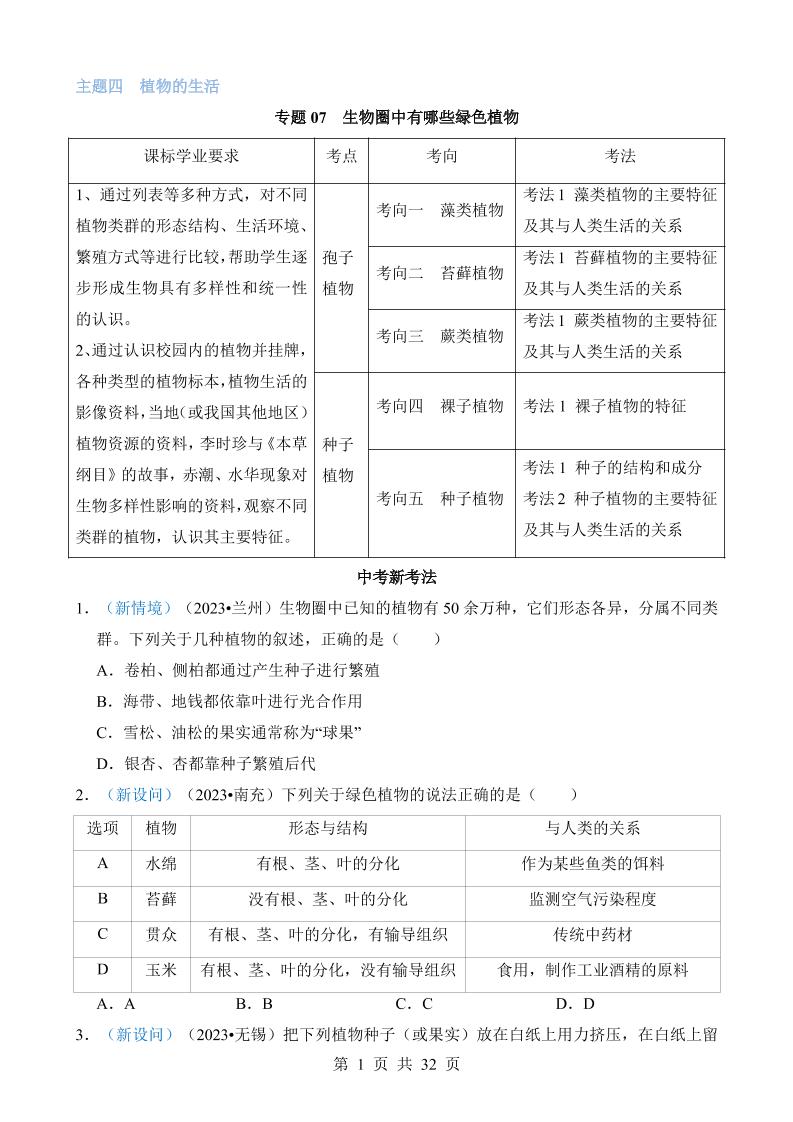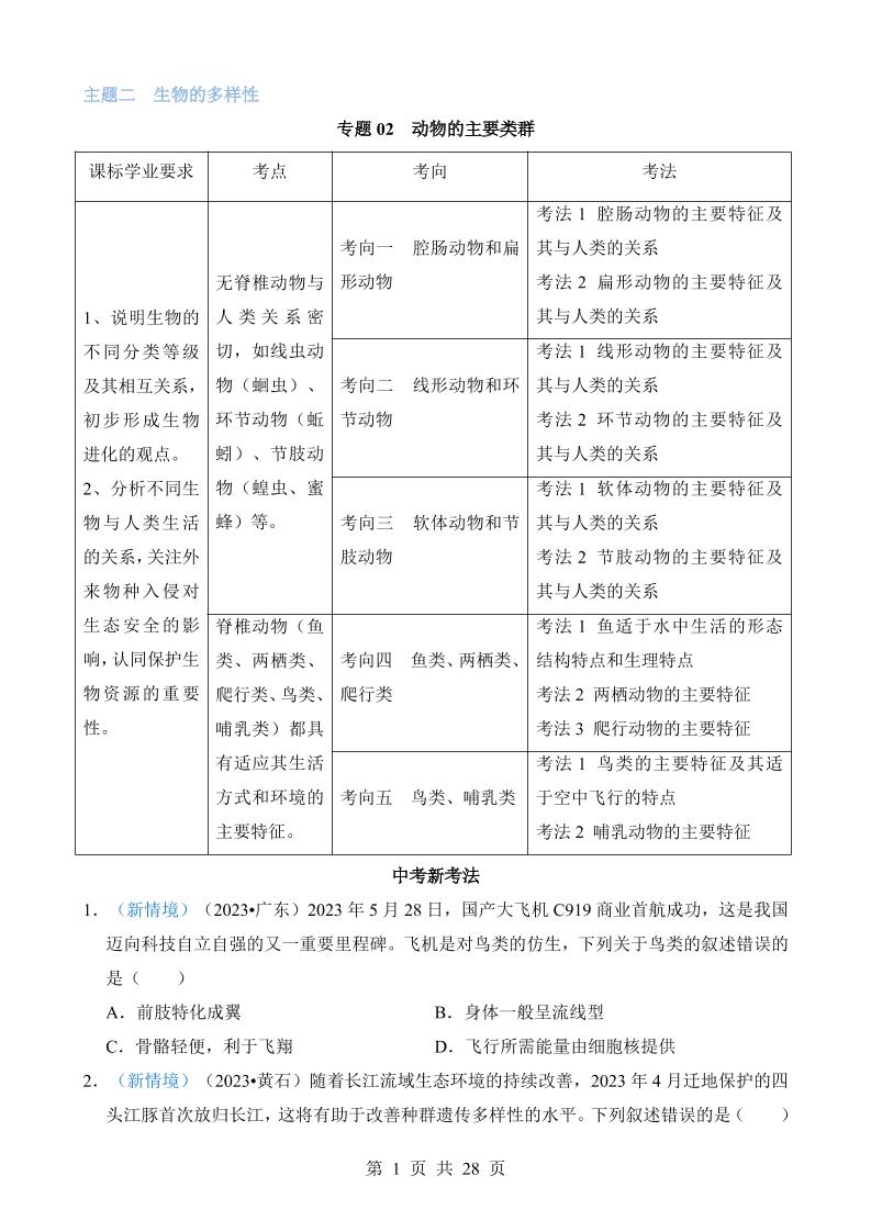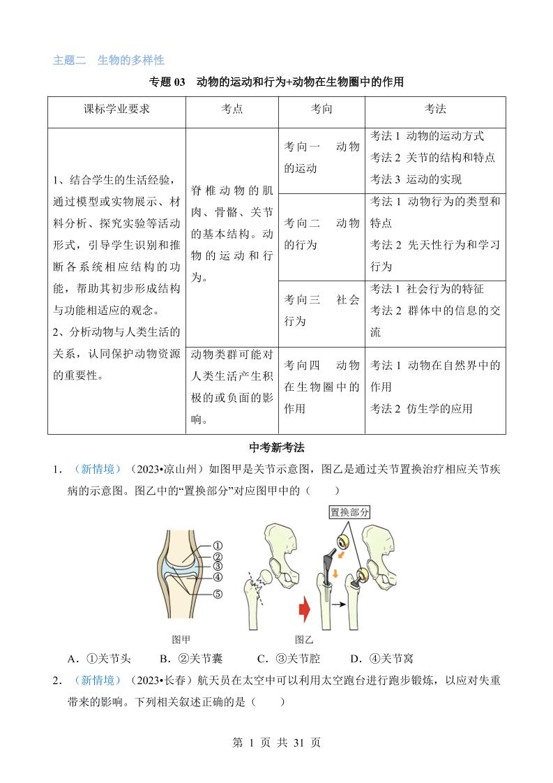 专题03 动物的运动和行为、动物在生物圈中的作用