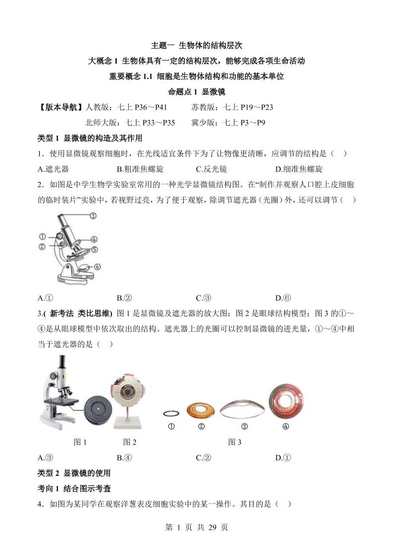 主题01 生物体的结构层次(练习)